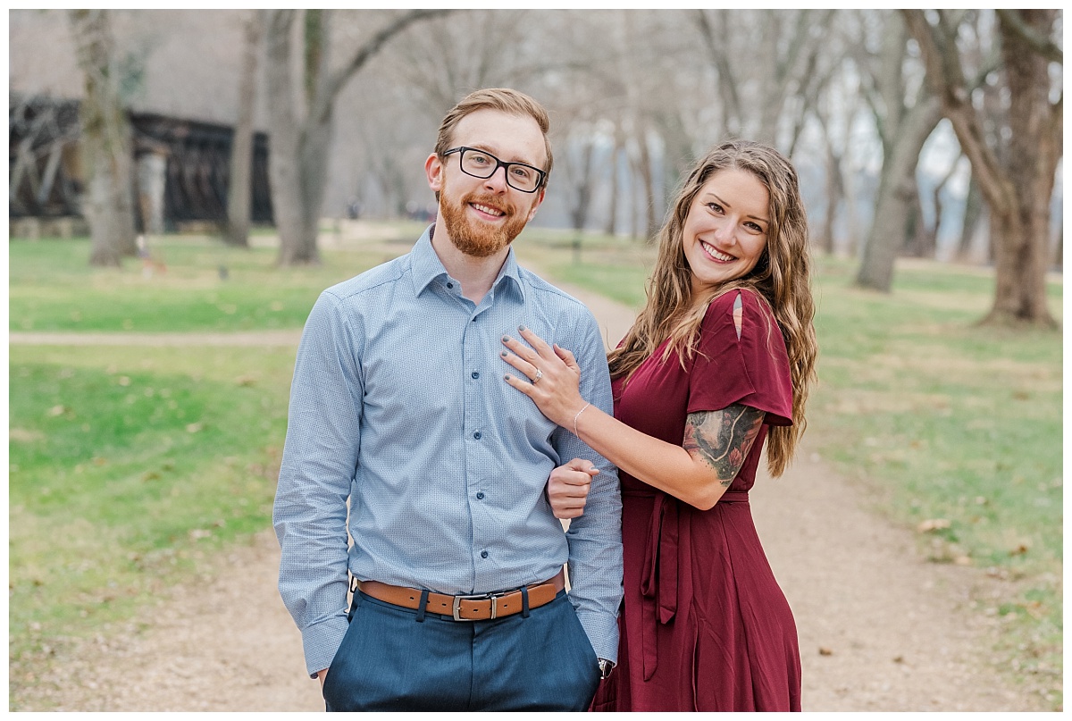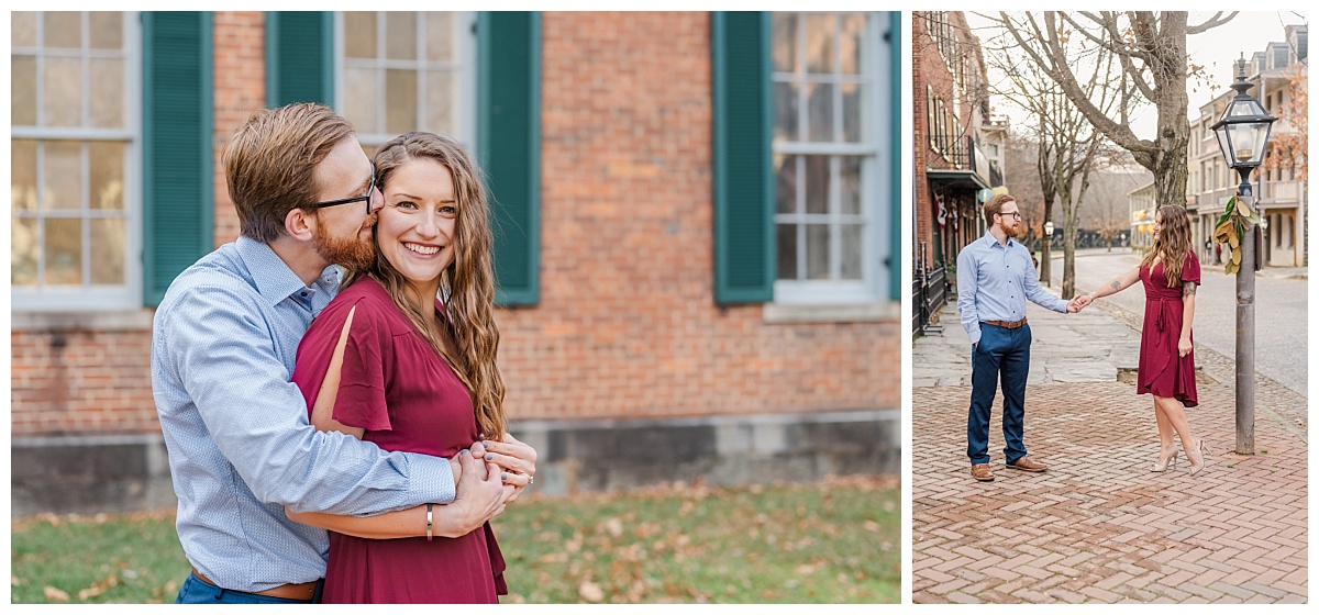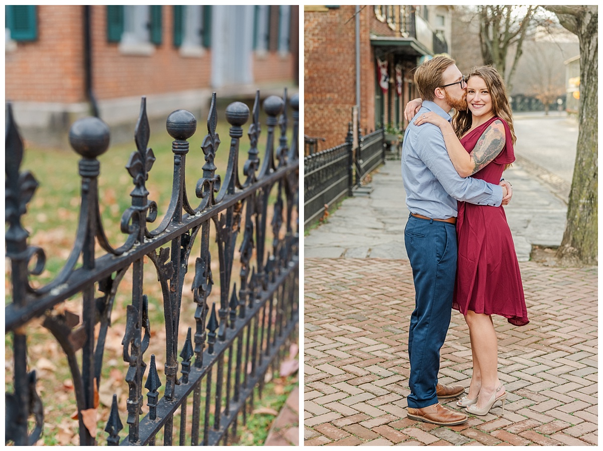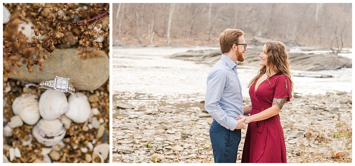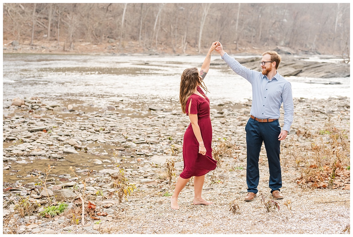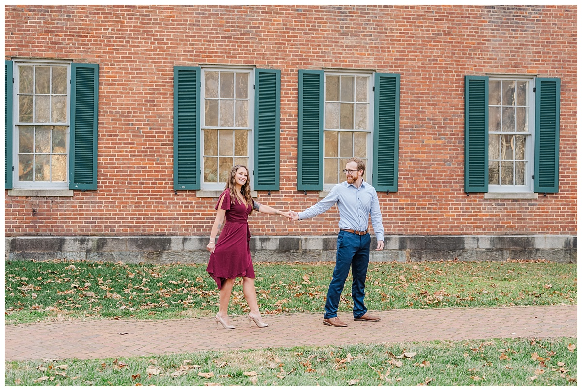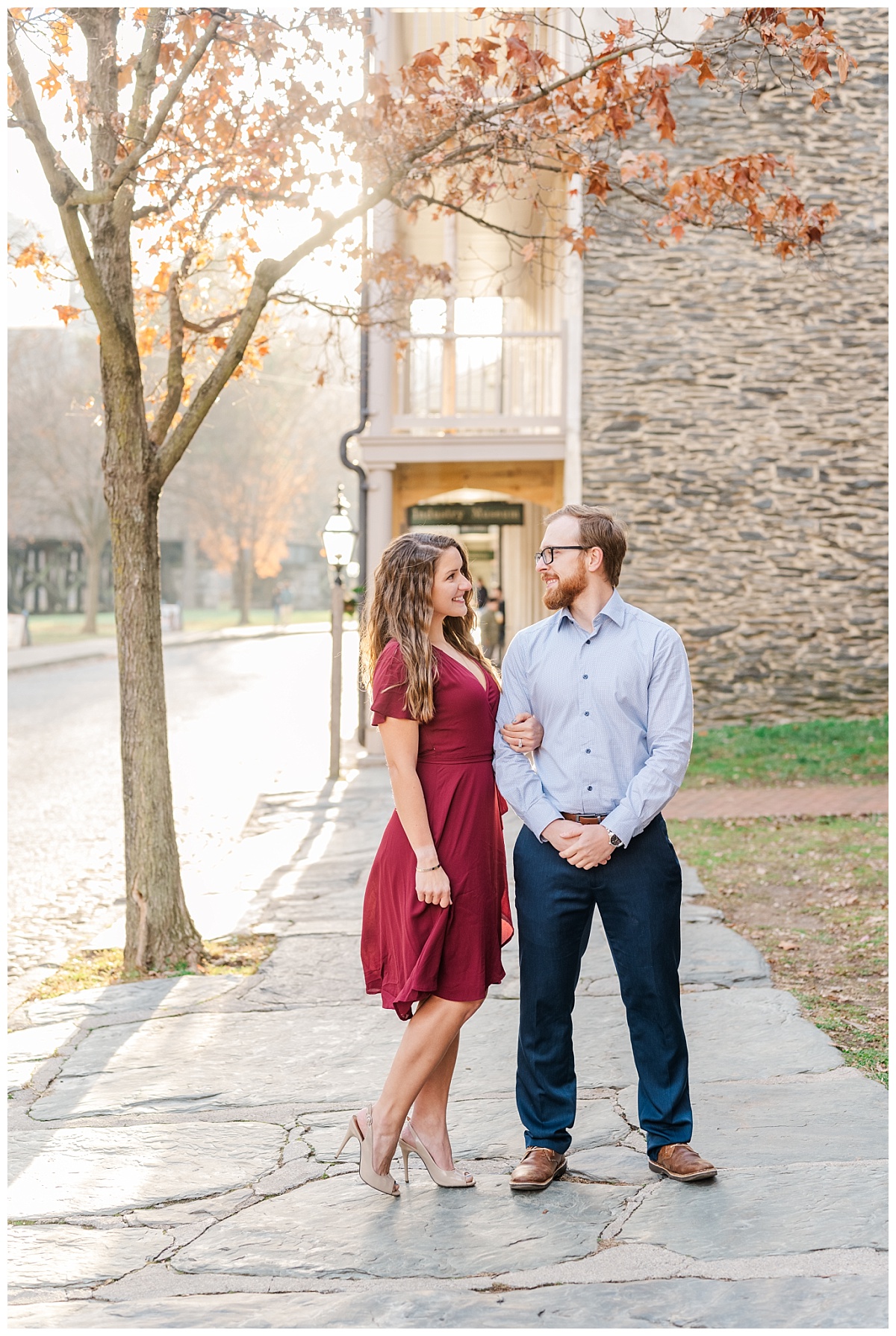 I had an amazing time exploring Harpers Ferry with Brandon and Laura for their engagement session this past weekend! I first met these two when I photographed Laura’s twin sister’s wedding in January of 2021. I am honored that I am now going to be able to capture their special day next May at Trumpet Vine Farms. We lucked out with the weather for this engagement session as the afternoon started out cloudy and ended with the most beautiful sunlight coming through the clouds! They were such good sports as we walked all over town and ventured both to the river as well as up the steep stairs to the front of the gorgeous St. Peters Catholic Church ! I love working with couples that are up for anything and just ready to have fun! Harpers Ferry was decorated for Christmas and we happened to be there on the Olde Tyme Christmas Celebration. We even ran into Mr. and Mrs. Claus! This engagement session in Harpers Ferry was beautiful and I can’t wait to spend more time with these two on their wedding day! For any one looking for engagement session locations Harpers Ferry is definitely one to add to the list as it has a huge variety of gorgeous backdrops!
