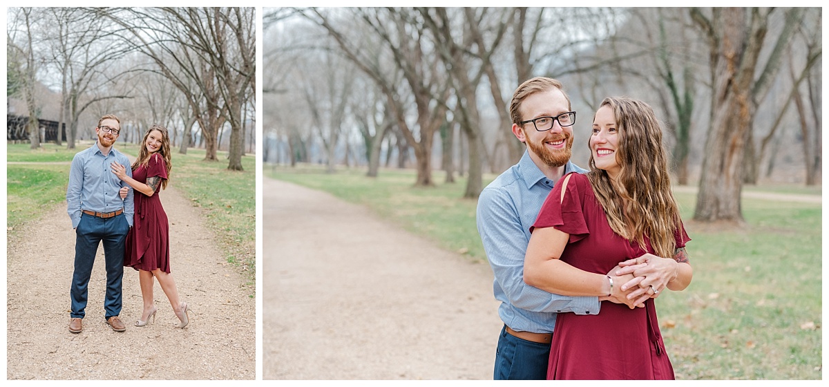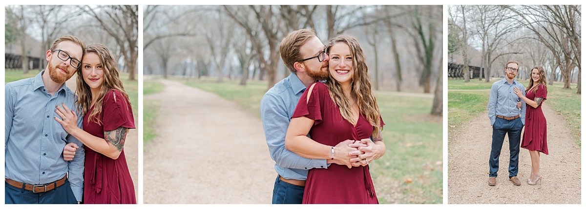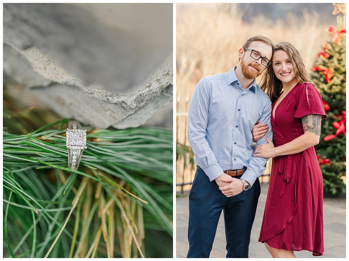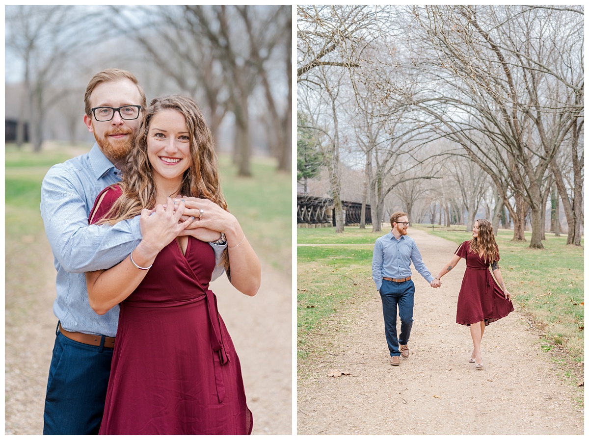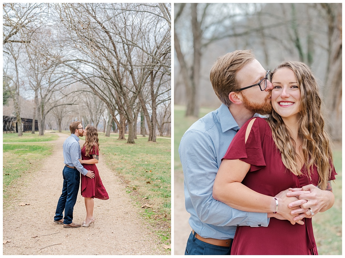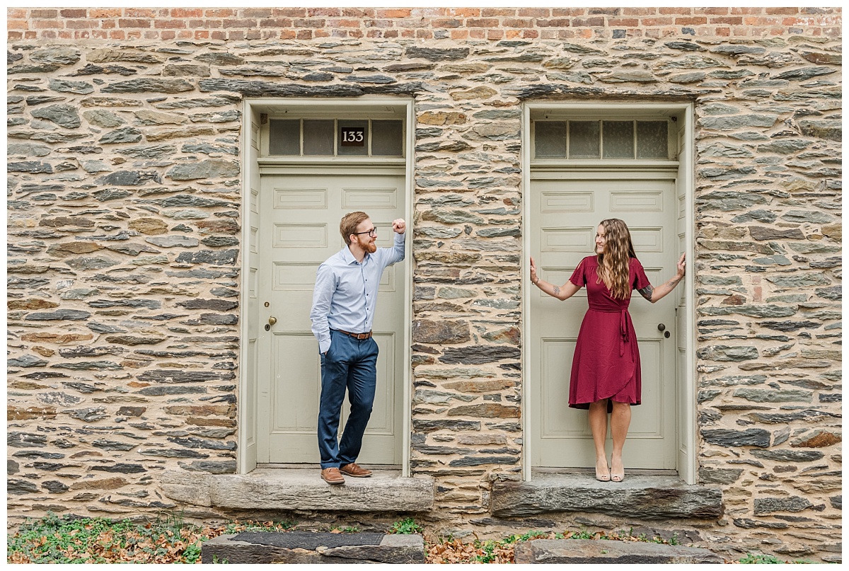I had an amazing time exploring Harpers Ferry with Brandon and Laura for their engagement session this past weekend! I first met these two when I photographed Laura’s twin sister’s wedding in January of 2021. I am honored that I am now going to be able to capture their special day next May at Trumpet Vine Farms. We lucked out with the weather for this engagement session as the afternoon started out cloudy and ended with the most beautiful sunlight coming through the clouds! They were such good sports as we walked all over town and ventured both to the river as well as up the steep stairs to the front of the gorgeous St. Peters Catholic Church ! I love working with couples that are up for anything and just ready to have fun! Harpers Ferry was decorated for Christmas and we happened to be there on the Olde Tyme Christmas Celebration. We even ran into Mr. and Mrs. Claus! This engagement session in Harpers Ferry was beautiful and I can’t wait to spend more time with these two on their wedding day! For any one looking for engagement session locations Harpers Ferry is definitely one to add to the list as it has a huge variety of gorgeous backdrops!