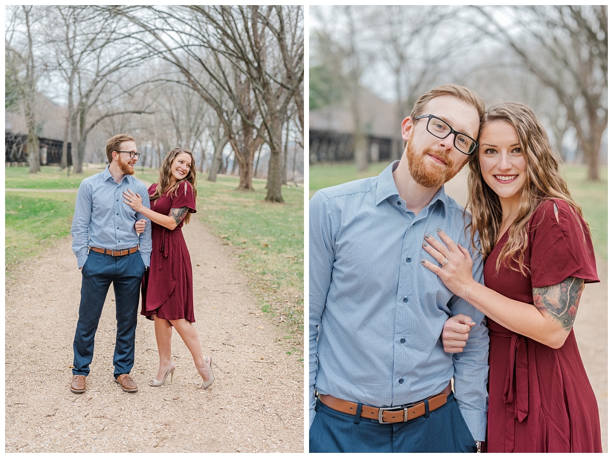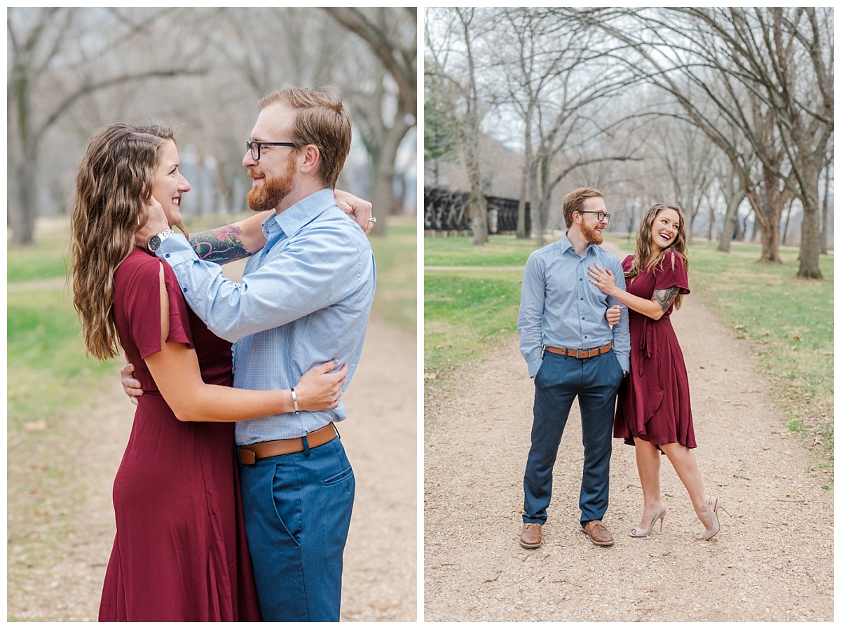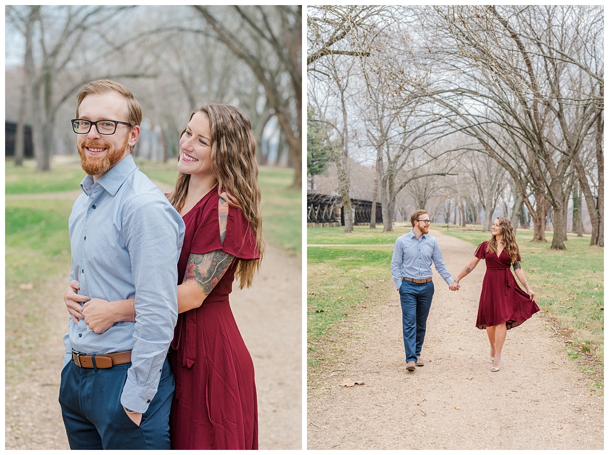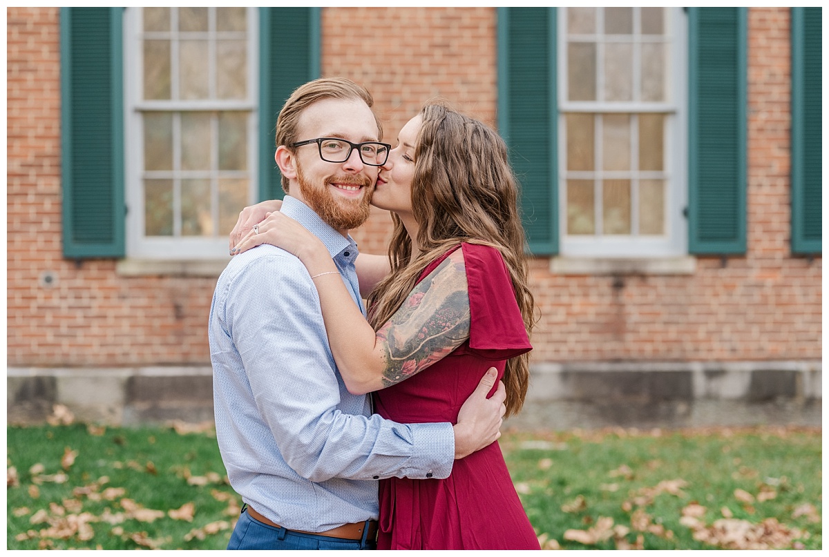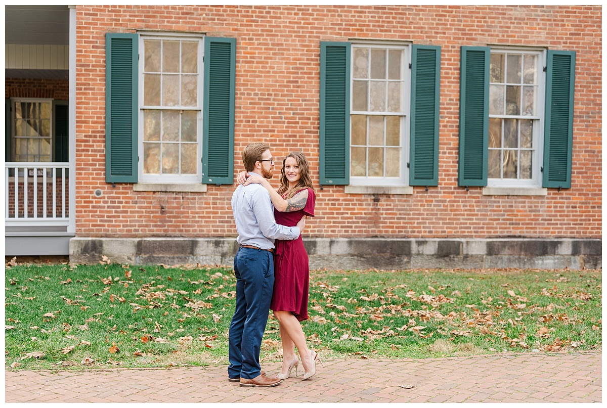 I had an amazing time exploring Harpers Ferry with Brandon and Laura for their engagement session this past weekend! I first met these two when I photographed Laura’s twin sister’s wedding in January of 2021. I am honored that I am now going to be able to capture their special day next May at Trumpet Vine Farms. We lucked out with the weather for this engagement session as the afternoon started out cloudy and ended with the most beautiful sunlight coming through the clouds! They were such good sports as we walked all over town and ventured both to the river as well as up the steep stairs to the front of the gorgeous St. Peters Catholic Church ! I love working with couples that are up for anything and just ready to have fun! Harpers Ferry was decorated for Christmas and we happened to be there on the Olde Tyme Christmas Celebration. We even ran into Mr. and Mrs. Claus! This engagement session in Harpers Ferry was beautiful and I can’t wait to spend more time with these two on their wedding day! For any one looking for engagement session locations Harpers Ferry is definitely one to add to the list as it has a huge variety of gorgeous backdrops!