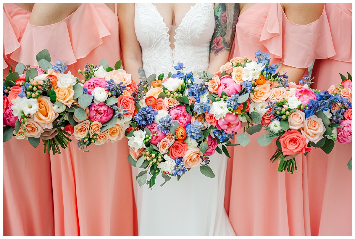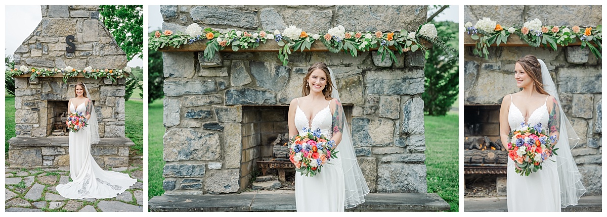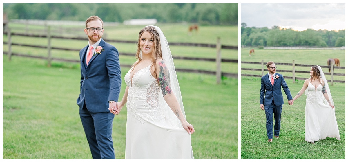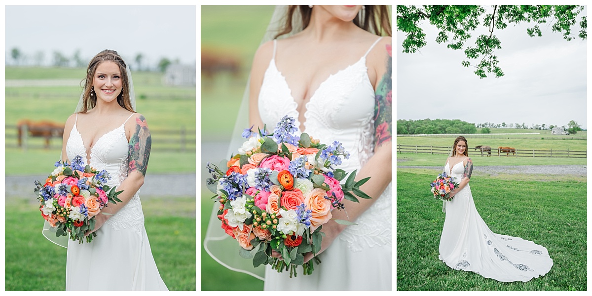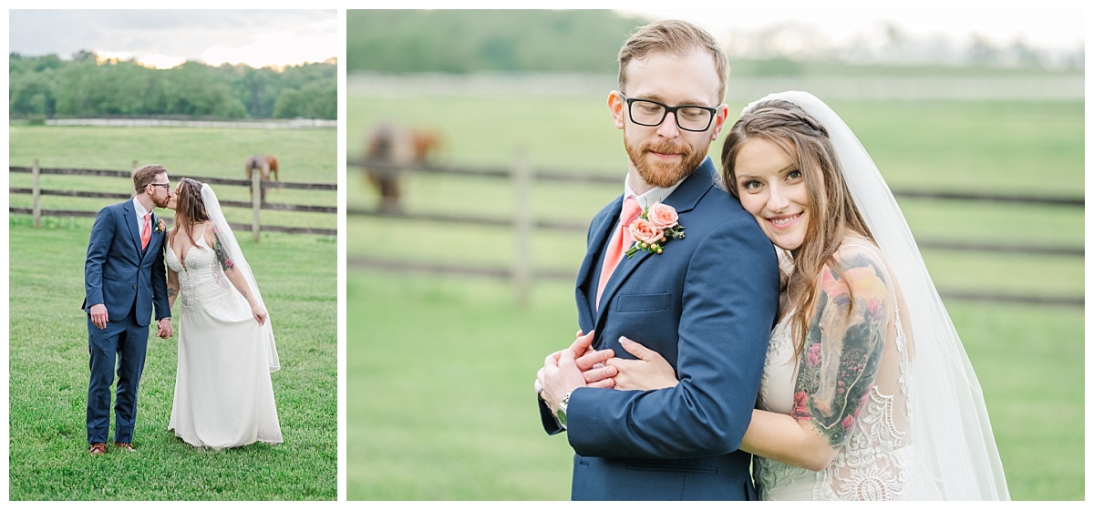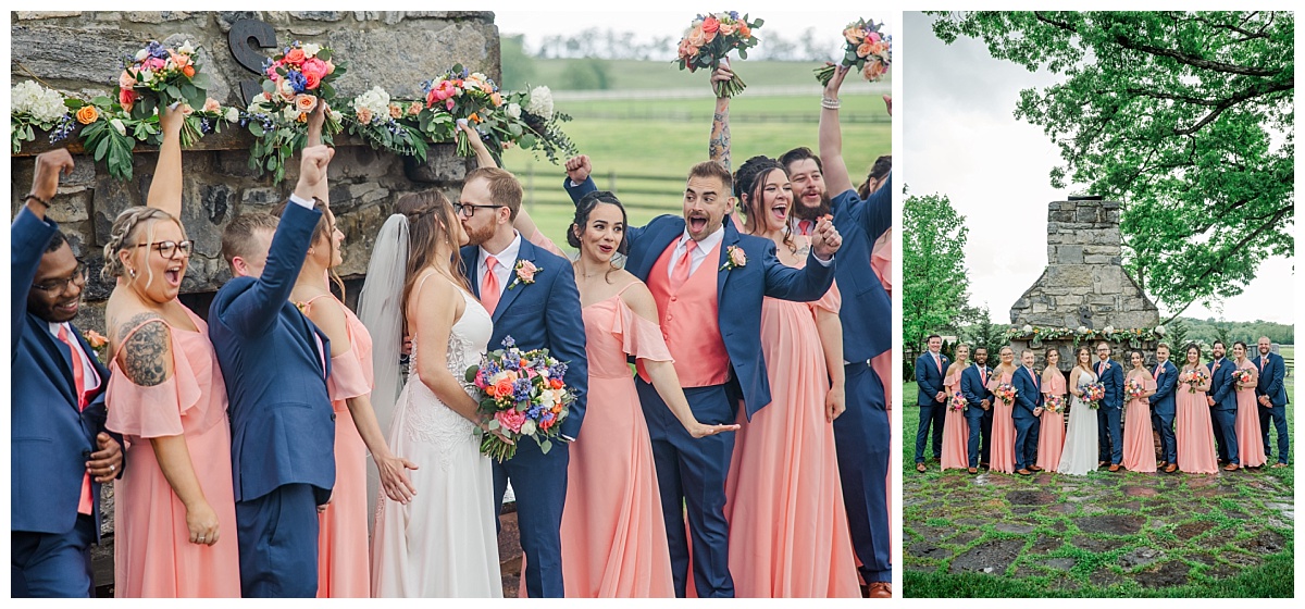 What a wonderful day it was celebrating the wedding of Brandon and Laura at Trumpet Vine Farm in Stephens City, Virginia!  Trumpet Vine Farm was the perfect backdrop for this gorgeous farm wedding.   The weather forecast was variable throughout the week and we were so thrilled that most of the day the rain held off!  We were able to capture beautiful moments outside with the outdoor stone fireplace and horse fields. We even had some golden glow of sunshine after a short rain storm!  I also love that Trumpet Vine Farm has horses that love to be part of portraits as the bride and her family are all horse lovers!   I had such a great time spending the day with this amazing couple and getting to know some of their closest family and friends.  It was so wonderful to see Laura’s family again, as I had so much fun photographing her twin sister’s wedding two years ago!  The florals for this wedding were absolutely stunning with their pops of blues and corals!   I was so honored to be part of this special day and love when I am able to create memories that will last a lifetime!  Congratulations to the new Mr. and Mrs. Smith!!!