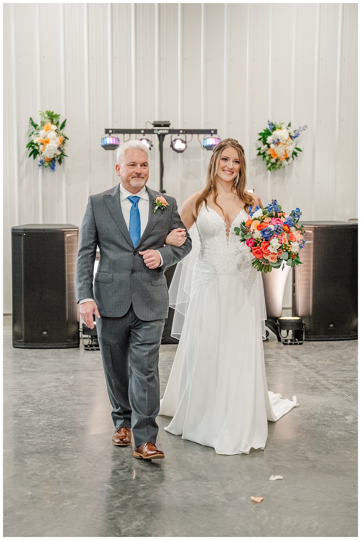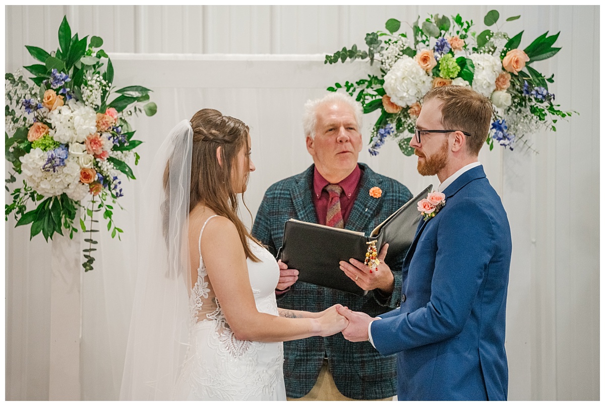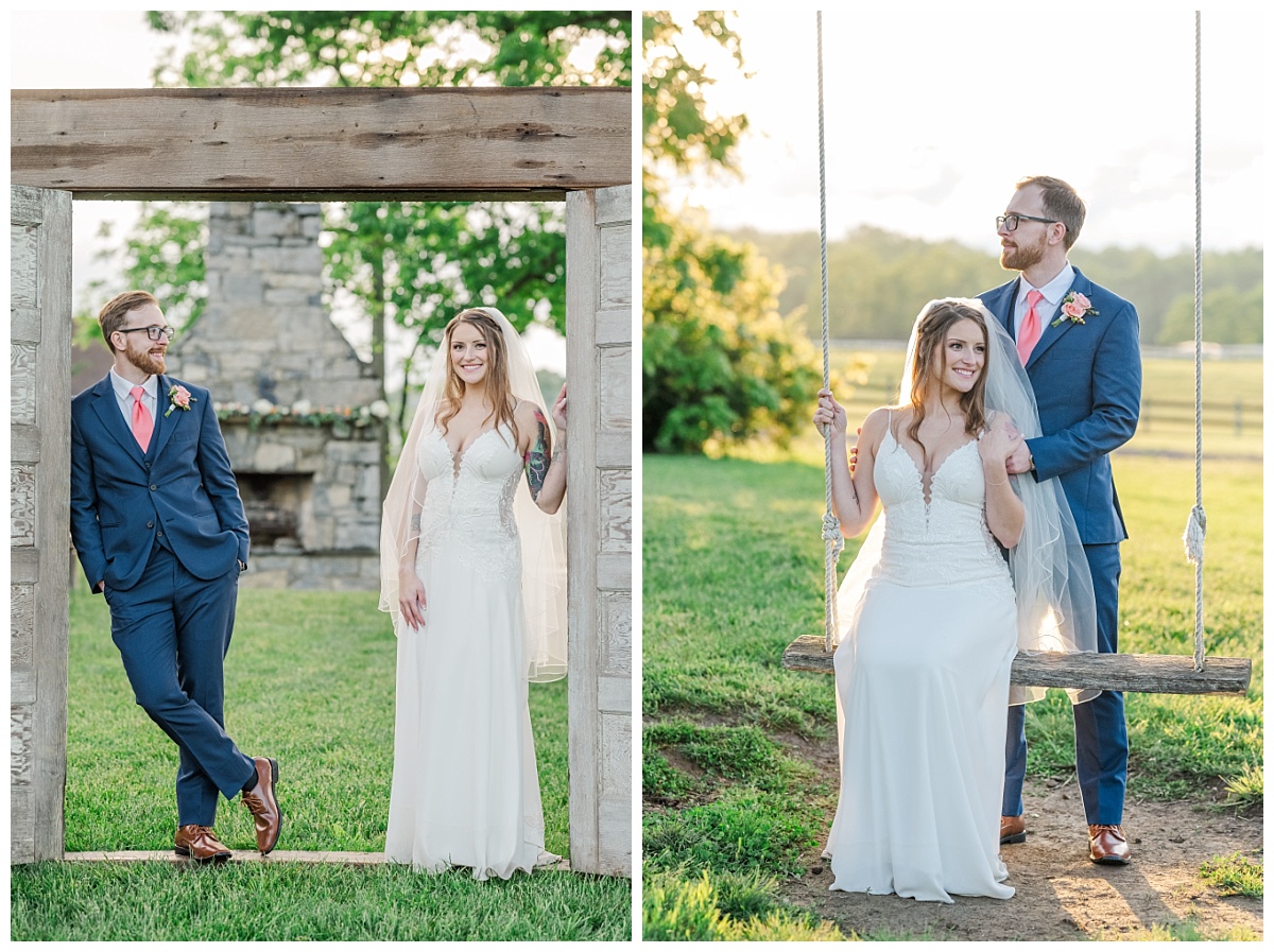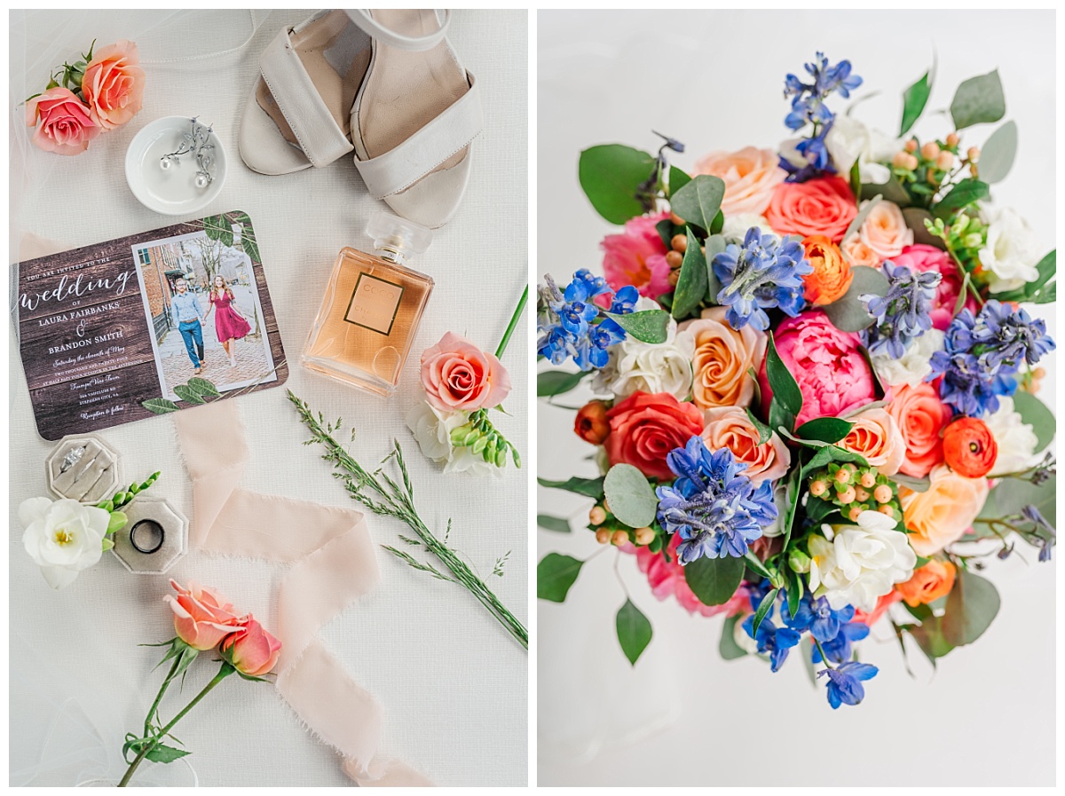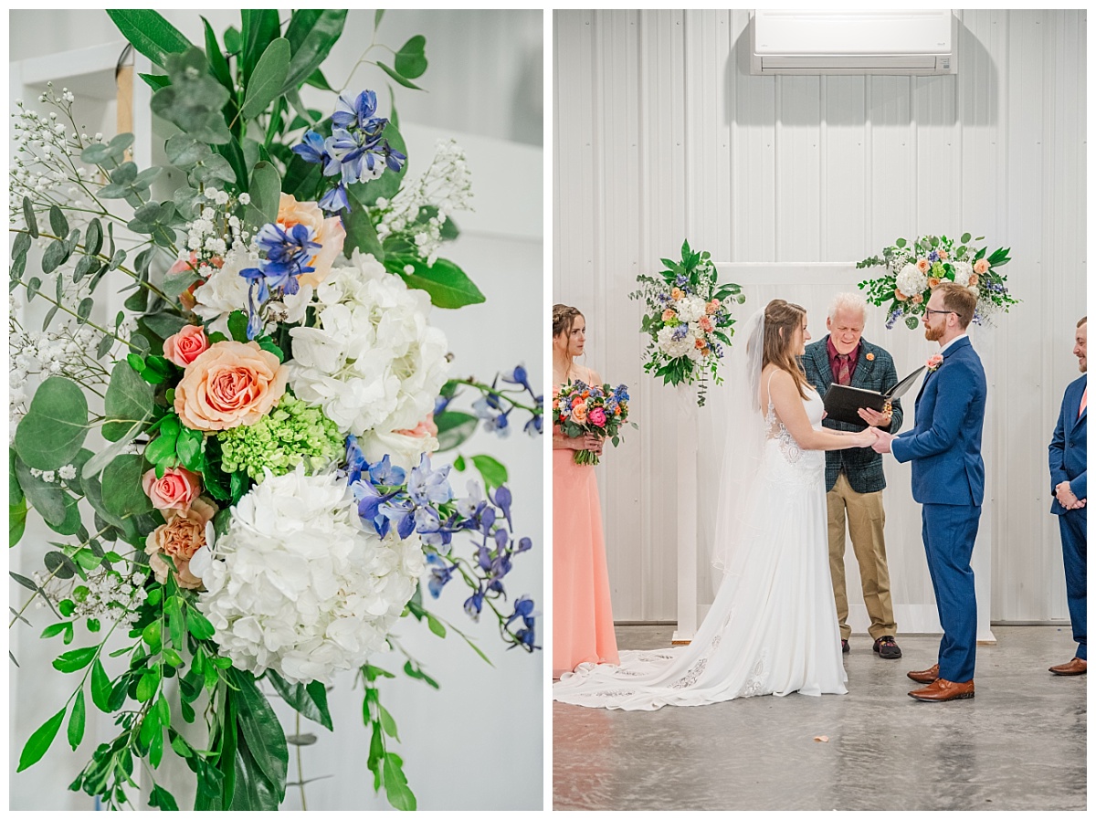 What a wonderful day it was celebrating the wedding of Brandon and Laura at Trumpet Vine Farm in Stephens City, Virginia!  Trumpet Vine Farm was the perfect backdrop for this gorgeous farm wedding.   The weather forecast was variable throughout the week and we were so thrilled that most of the day the rain held off!  We were able to capture beautiful moments outside with the outdoor stone fireplace and horse fields. We even had some golden glow of sunshine after a short rain storm!  I also love that Trumpet Vine Farm has horses that love to be part of portraits as the bride and her family are all horse lovers!   I had such a great time spending the day with this amazing couple and getting to know some of their closest family and friends.  It was so wonderful to see Laura’s family again, as I had so much fun photographing her twin sister’s wedding two years ago!  The florals for this wedding were absolutely stunning with their pops of blues and corals!   I was so honored to be part of this special day and love when I am able to create memories that will last a lifetime!  Congratulations to the new Mr. and Mrs. Smith!!!