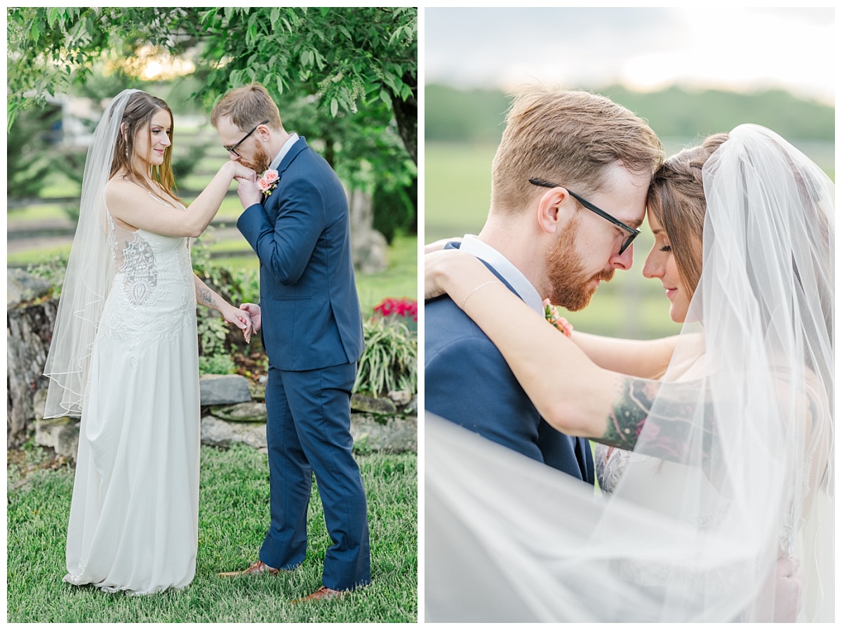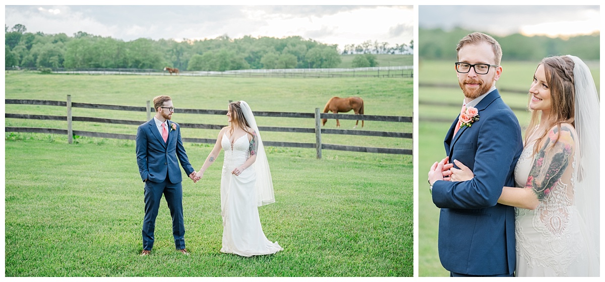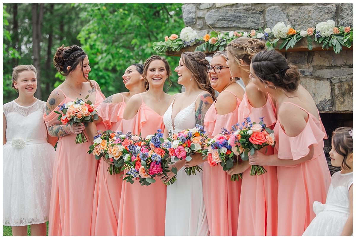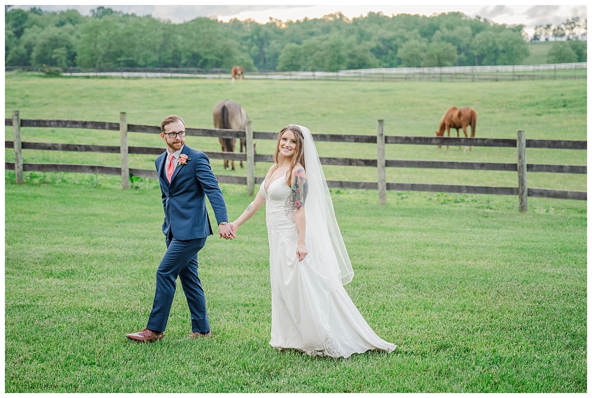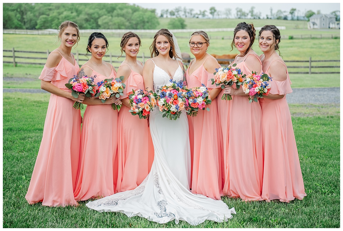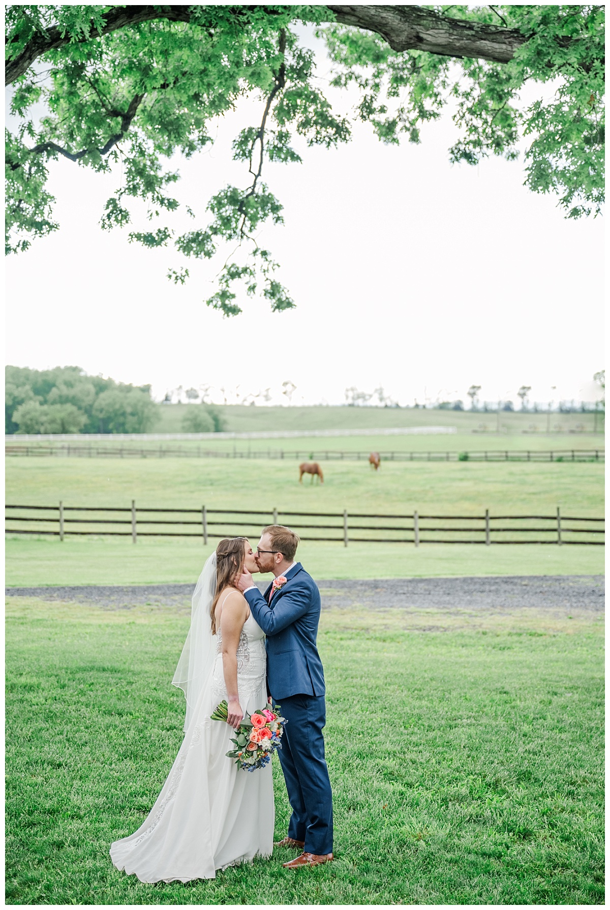 What a wonderful day it was celebrating the wedding of Brandon and Laura at Trumpet Vine Farm in Stephens City, Virginia! Trumpet Vine Farm was the perfect backdrop for this gorgeous farm wedding.  The weather forecast was variable throughout the week and we were so thrilled that most of the day the rain held off! We were able to capture beautiful moments outside with the outdoor stone fireplace and horse fields. We even had some golden glow of sunshine after a short rain storm! I also love that Trumpet Vine Farm has horses that love to be part of portraits as the bride and her family are all horse lovers!  I had such a great time spending the day with this amazing couple and getting to know some of their closest family and friends. It was so wonderful to see Laura’s family again, as I had so much fun photographing her twin sister’s wedding two years ago! The florals for this wedding were absolutely stunning with their pops of blues and corals!  I was so honored to be part of this special day and love when I am able to create memories that will last a lifetime! Congratulations to the new Mr. and Mrs. Smith!!!