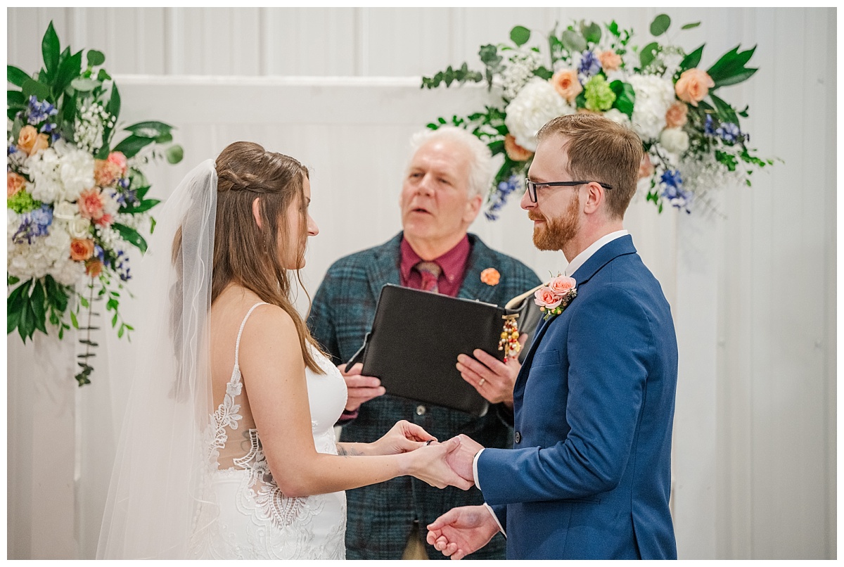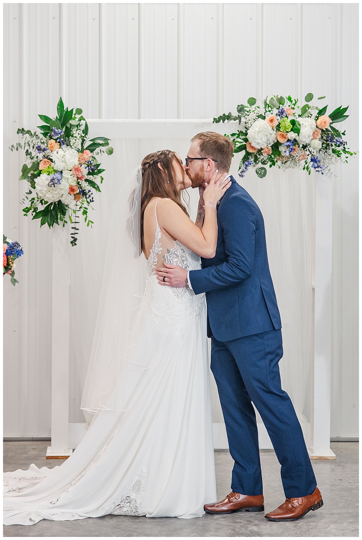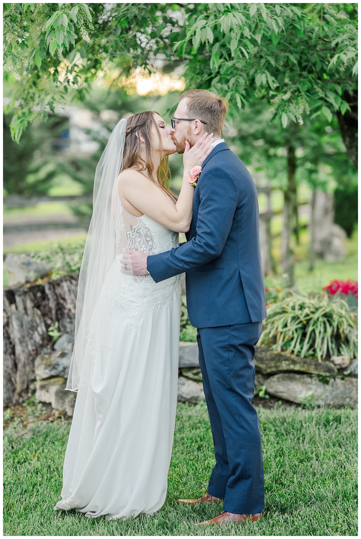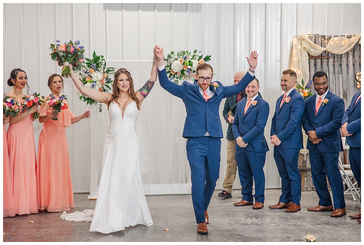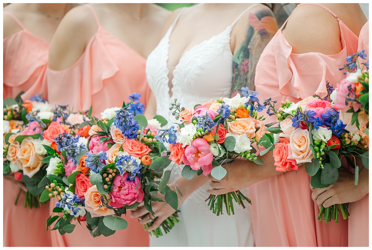 What a wonderful day it was celebrating the wedding of Brandon and Laura at Trumpet Vine Farm in Stephens City, Virginia! Trumpet Vine Farm was the perfect backdrop for this gorgeous farm wedding.  The weather forecast was variable throughout the week and we were so thrilled that most of the day the rain held off! We were able to capture beautiful moments outside with the outdoor stone fireplace and horse fields. We even had some golden glow of sunshine after a short rain storm! I also love that Trumpet Vine Farm has horses that love to be part of portraits as the bride and her family are all horse lovers!  I had such a great time spending the day with this amazing couple and getting to know some of their closest family and friends. It was so wonderful to see Laura’s family again, as I had so much fun photographing her twin sister’s wedding two years ago! The florals for this wedding were absolutely stunning with their pops of blues and corals!  I was so honored to be part of this special day and love when I am able to create memories that will last a lifetime! Congratulations to the new Mr. and Mrs. Smith!!!