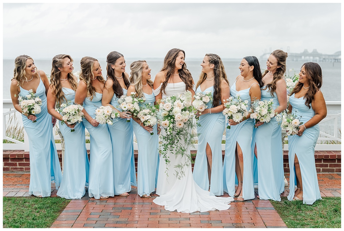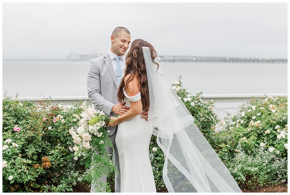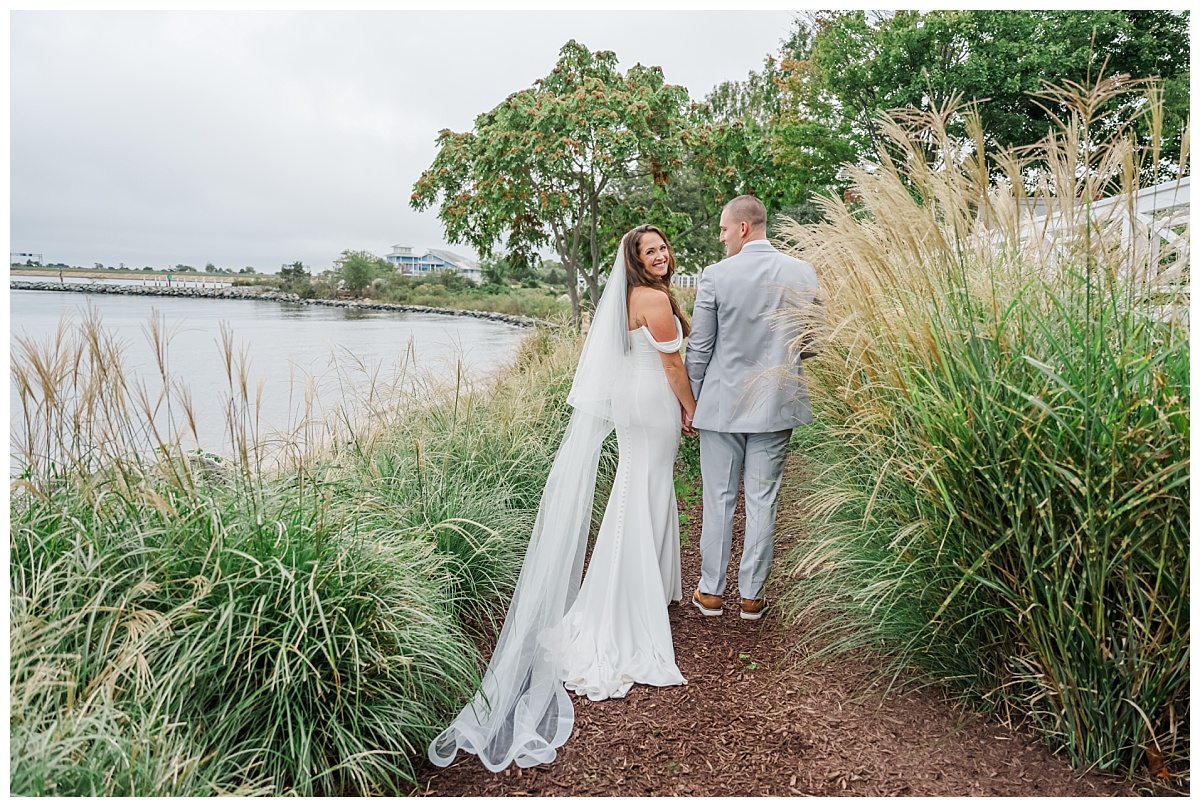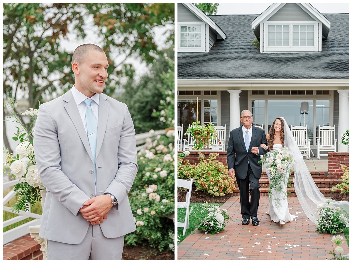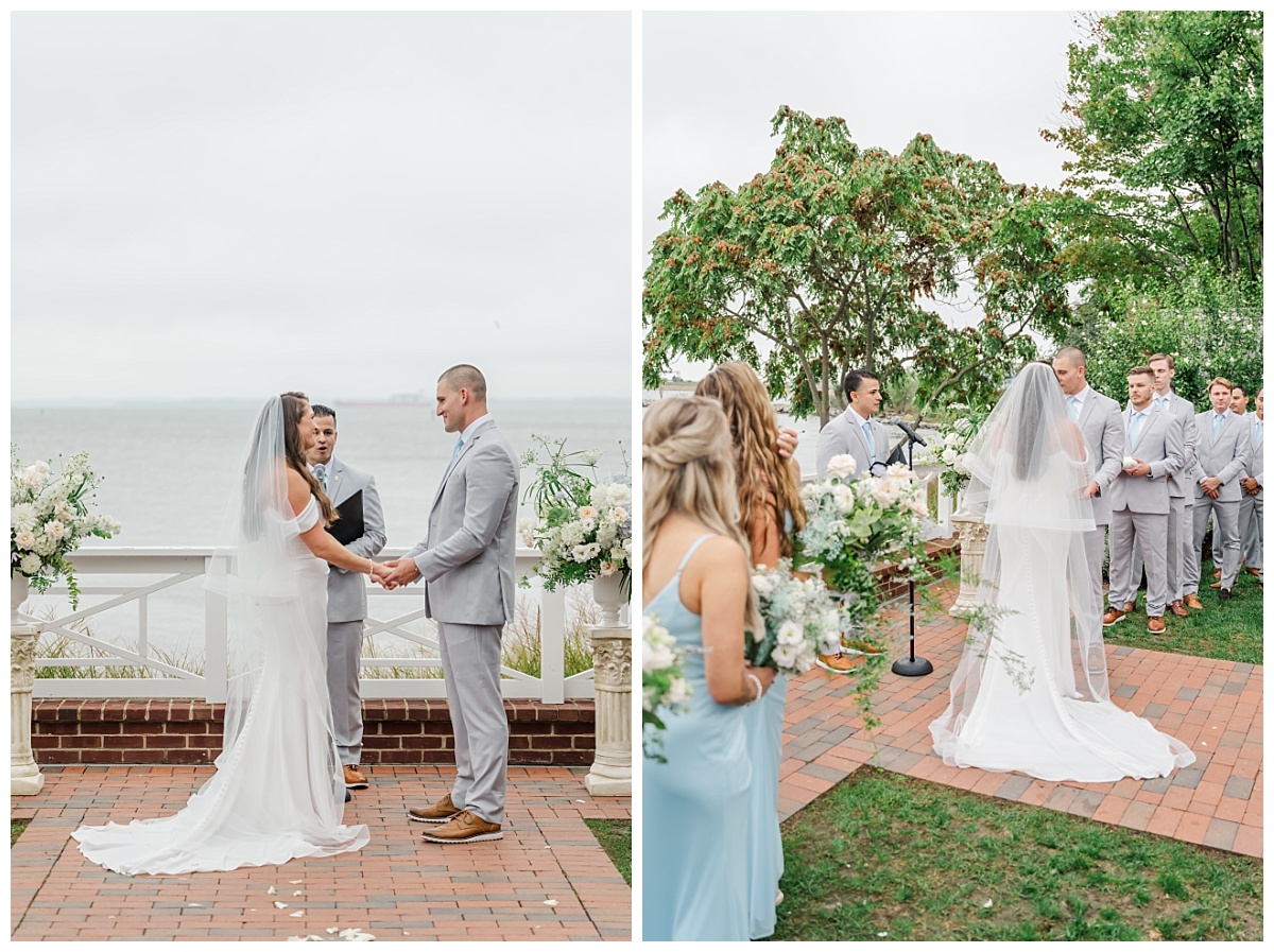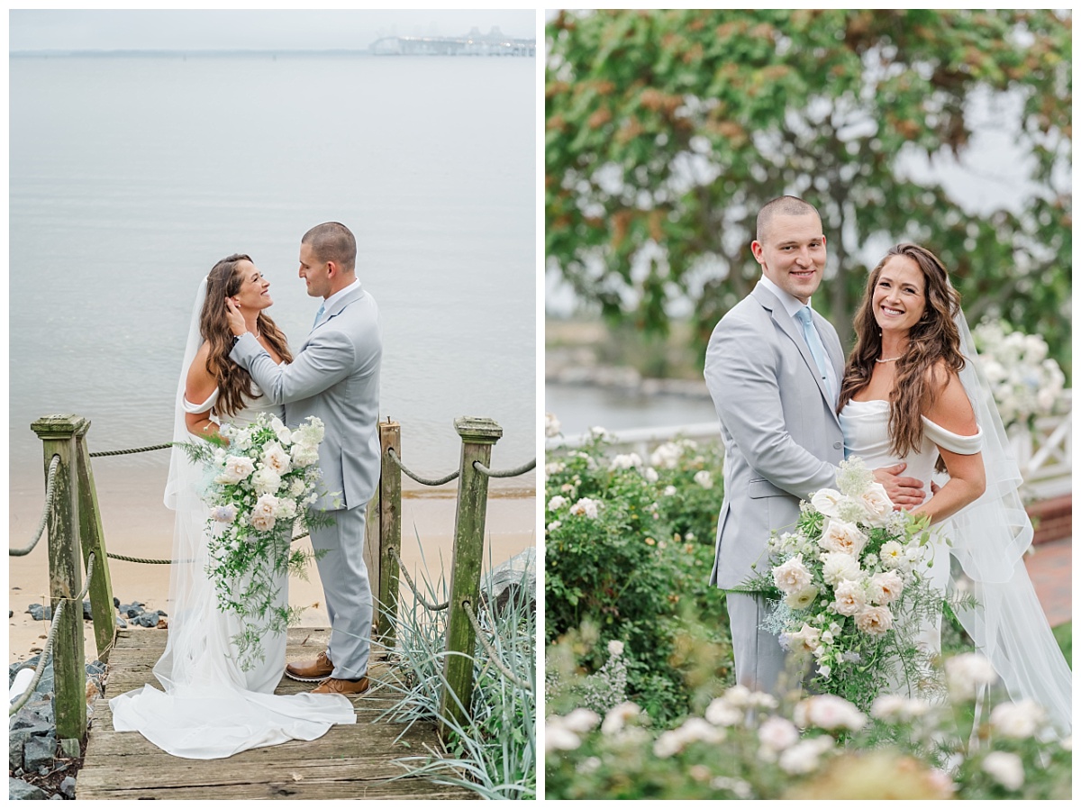 What I thought was going to end up a rainy wedding day at Chesapeake Bay Beach Club ended up being a mix of clouds and short times of sprinkles which ended up becoming a recipe for an amazing wedding day! Devon and Karl’s love story was beautiful from start to finish! They were surrounded by a fantastic group of friends and family who were eager to celebrate this long time couple’s wedding vows! I was so excited to hear that Devon was determined to have her ceremony outside and I am so glad that she did because the rain held out and the cloud cover helped to create the most beautiful images of the amazing backdrop at Chesapeake Bay Beach Club!