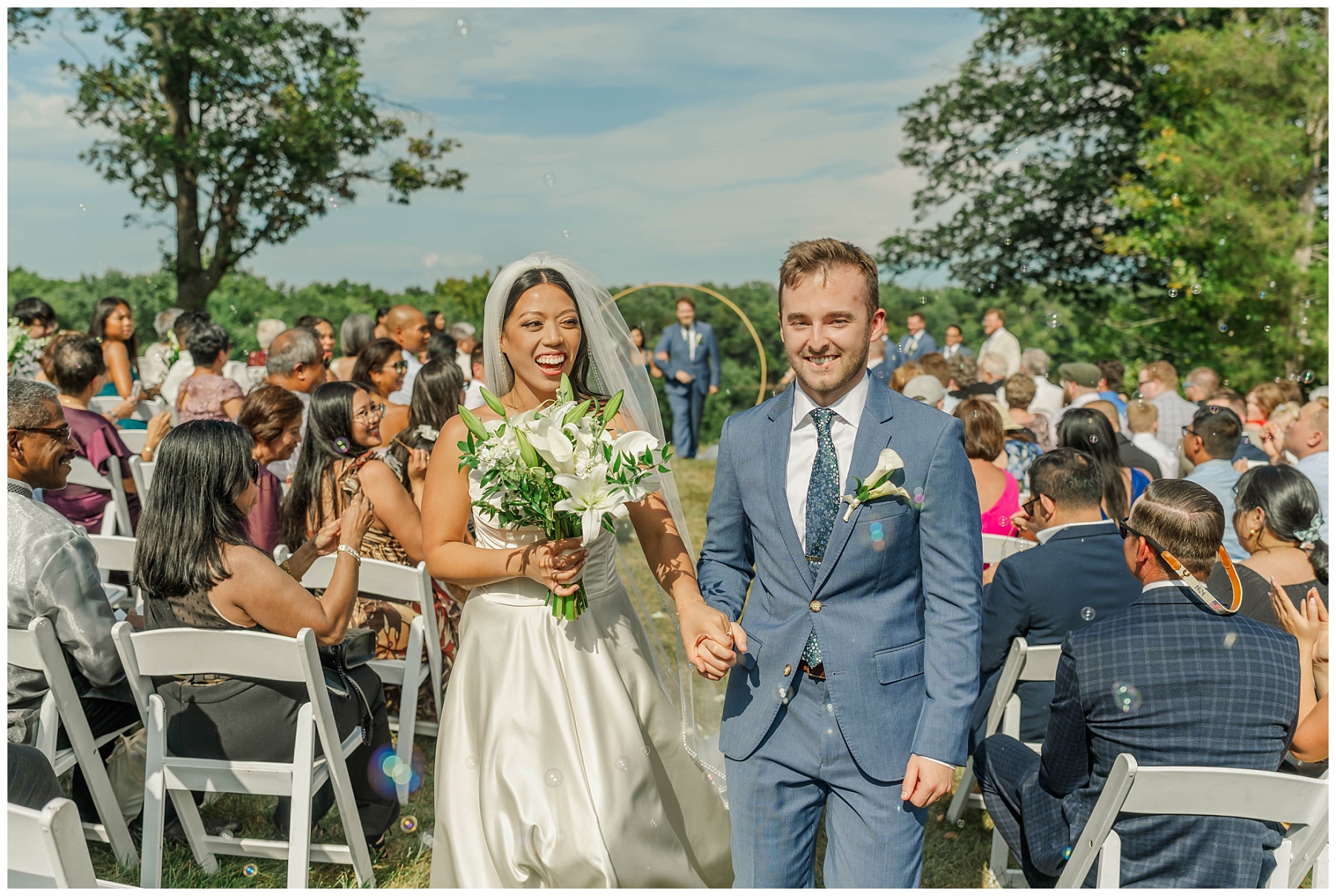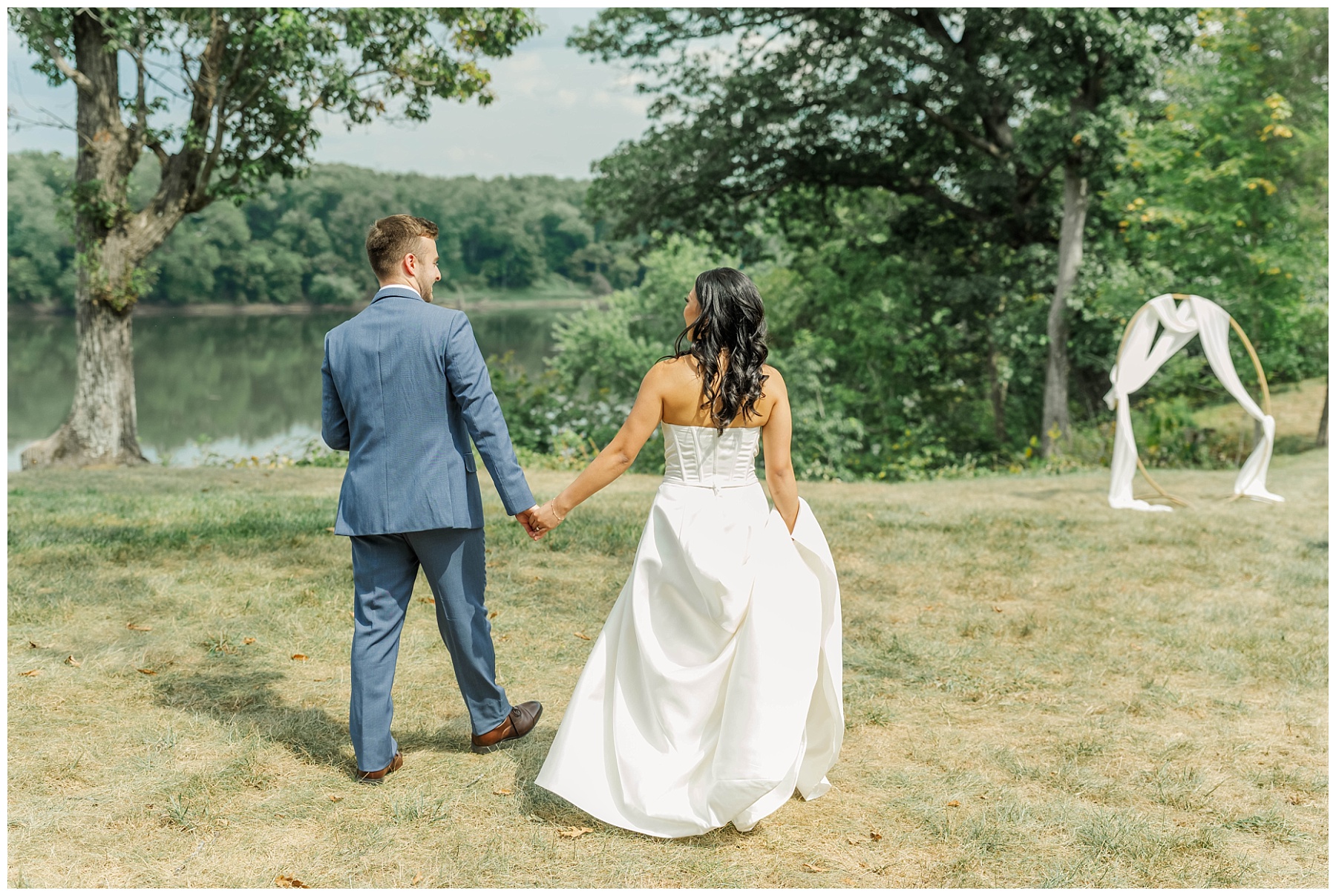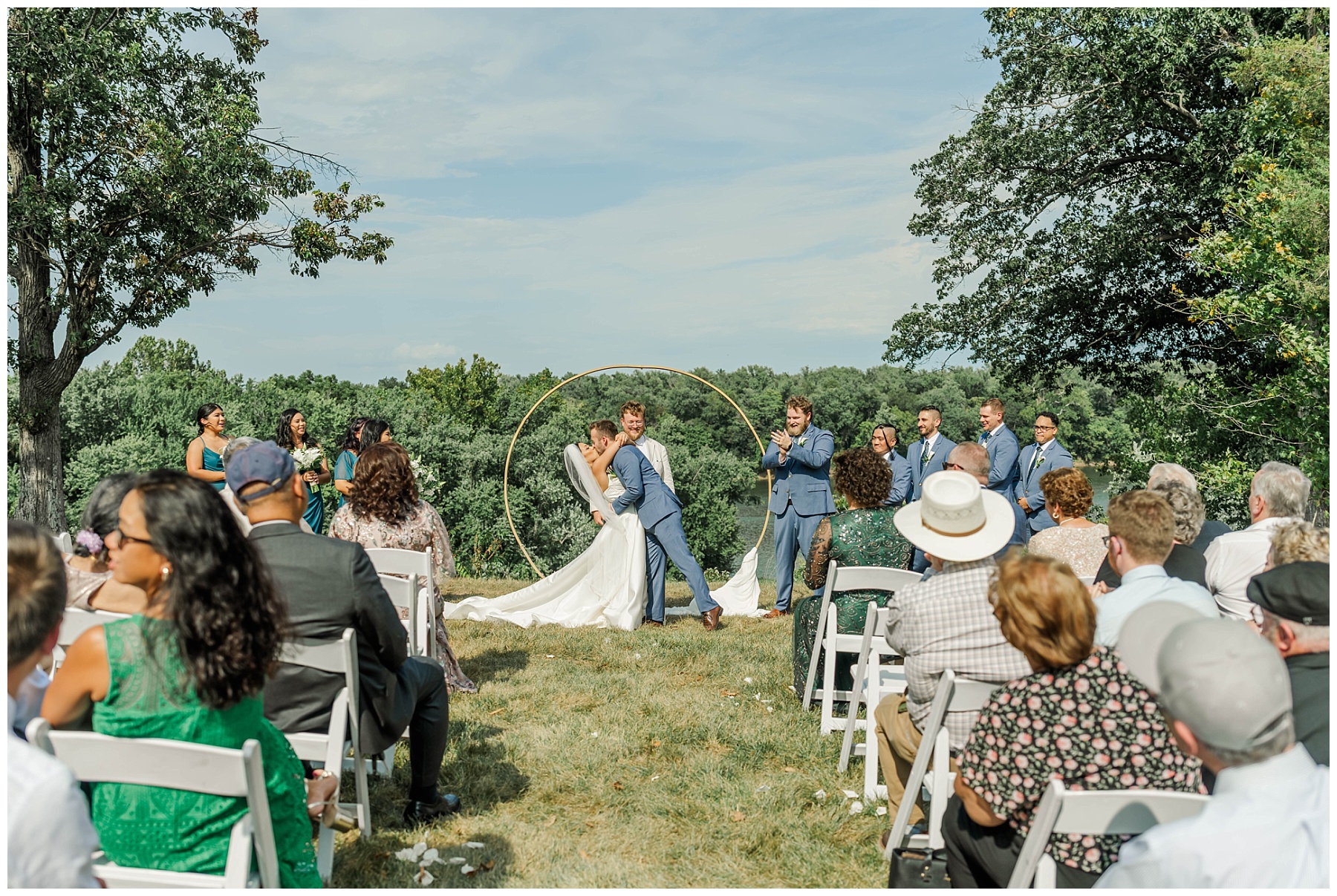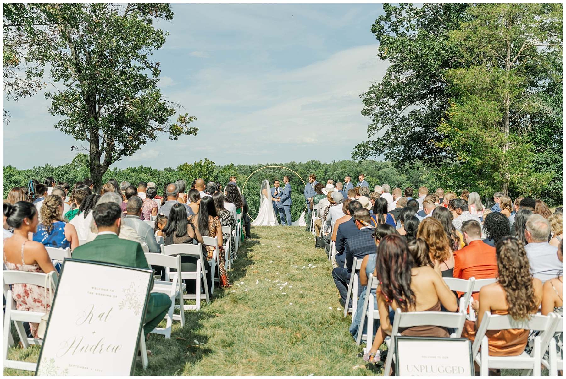 The week leading up to their big day carried the constant threat of storms, and the forecast for September 6th wasn’t looking promising. But in true wedding miracle fashion, the skies cleared and the rain held off, giving Kat and Andrew the beautiful outdoor ceremony they had dreamed of. Guests gathered on the lawn overlooking the Potomac River—a view that never fails to leave everyone in awe.