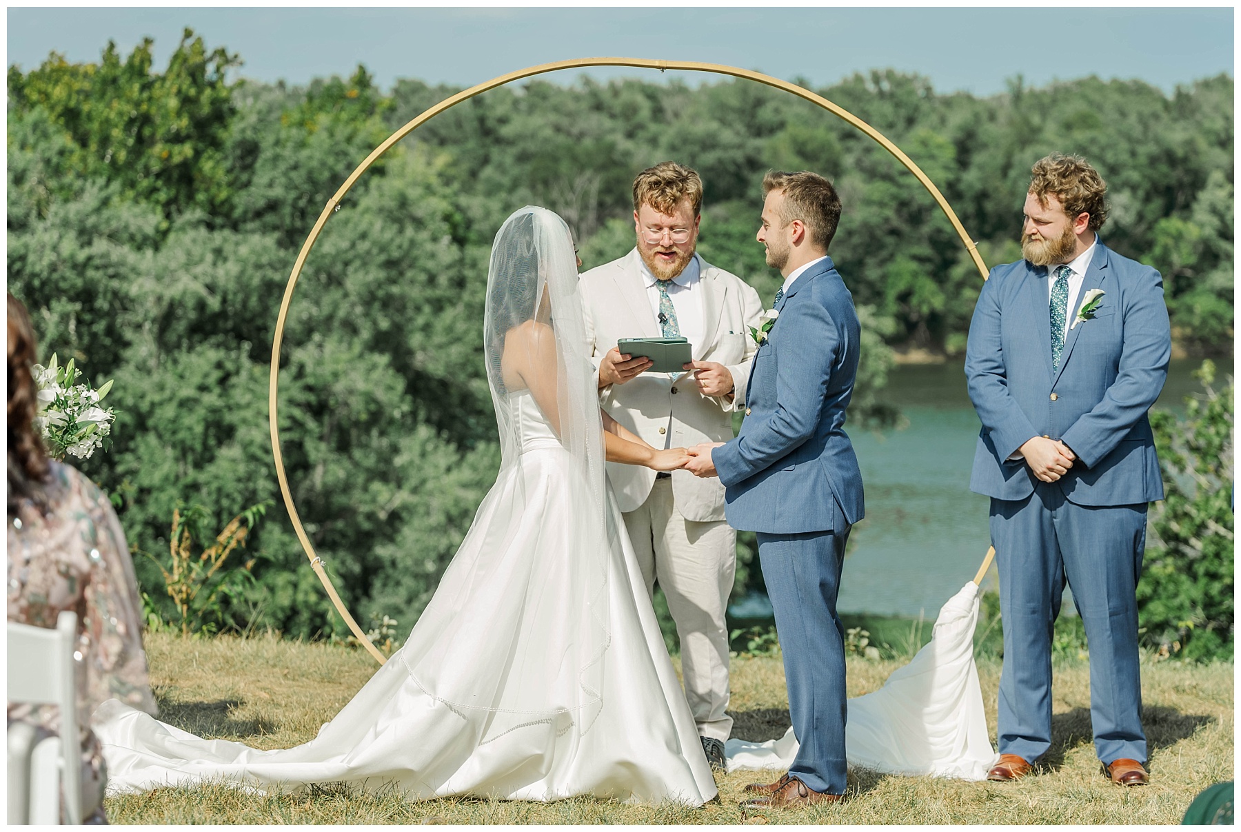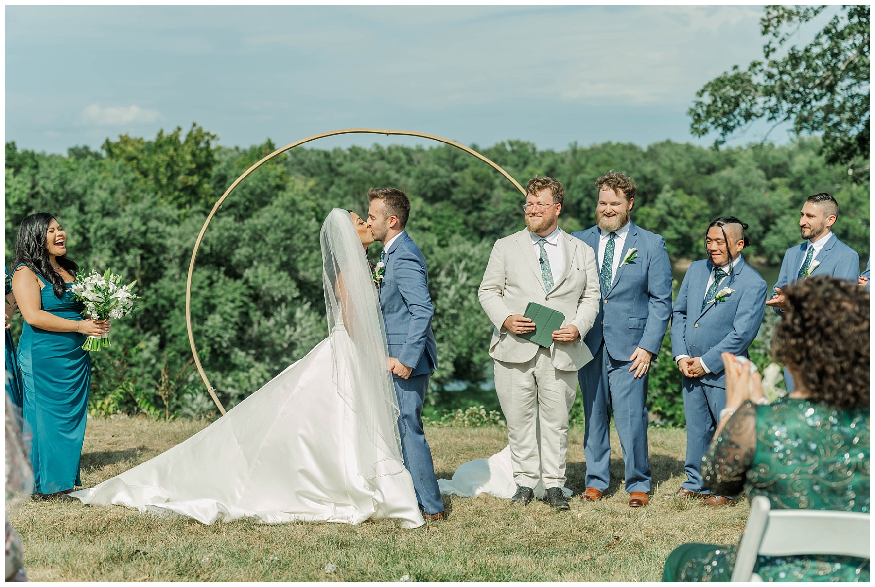 The outdoor ceremony site at Murray Hill is one of the venue’s most breathtaking features, and Kat and Andrew’s wedding made the most of it. With the Potomac River as their backdrop and the early fall breeze adding just the right touch, their vows felt even more meaningful against the stunning landscape.