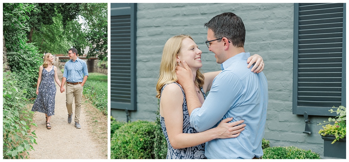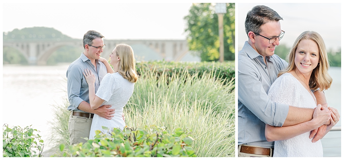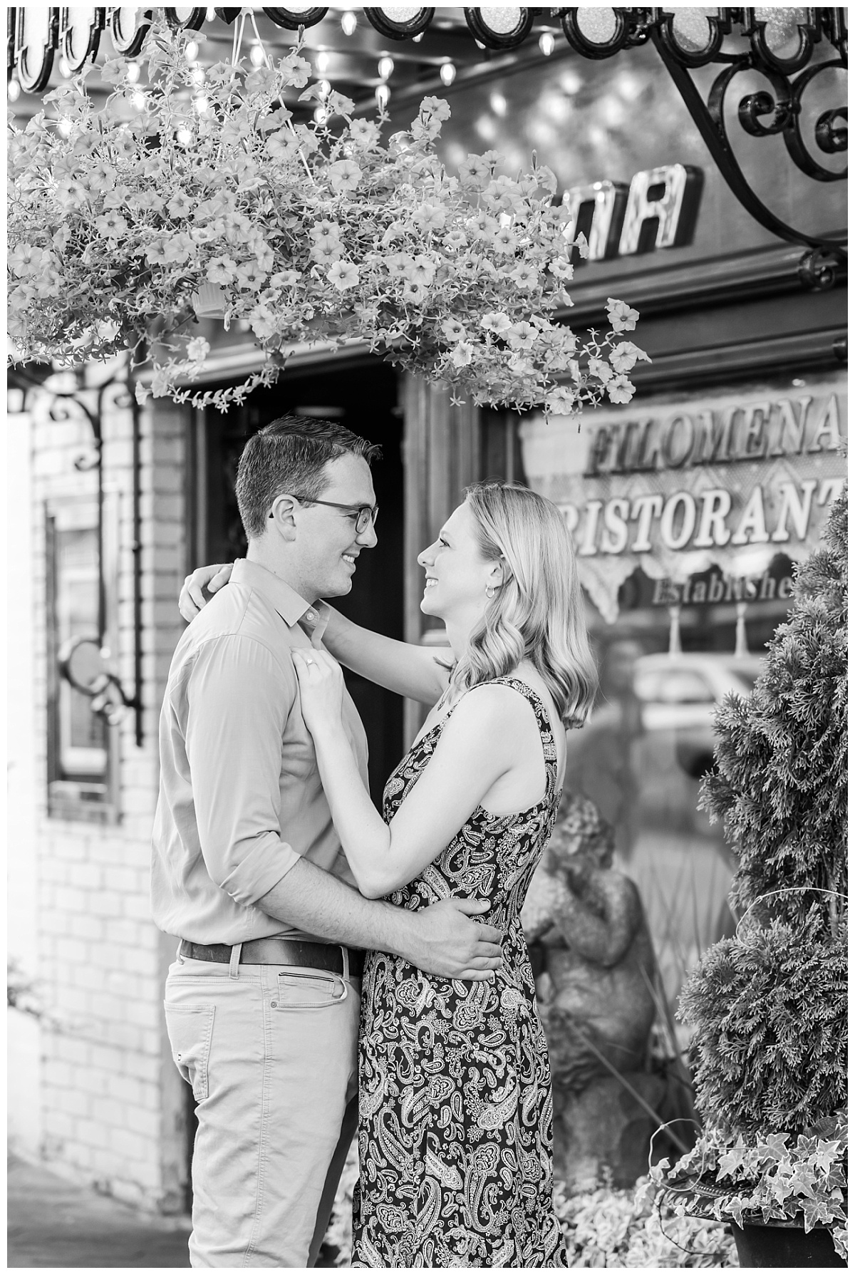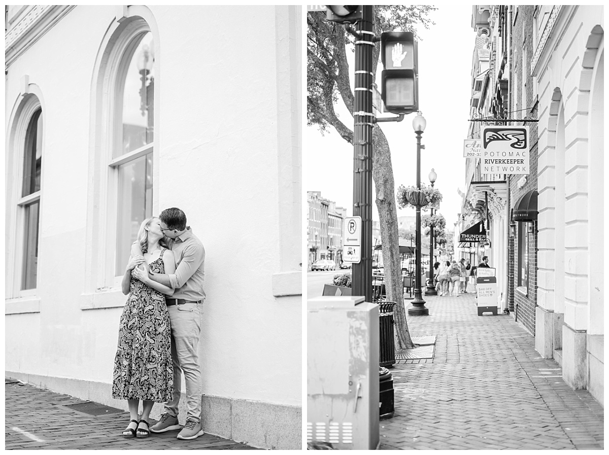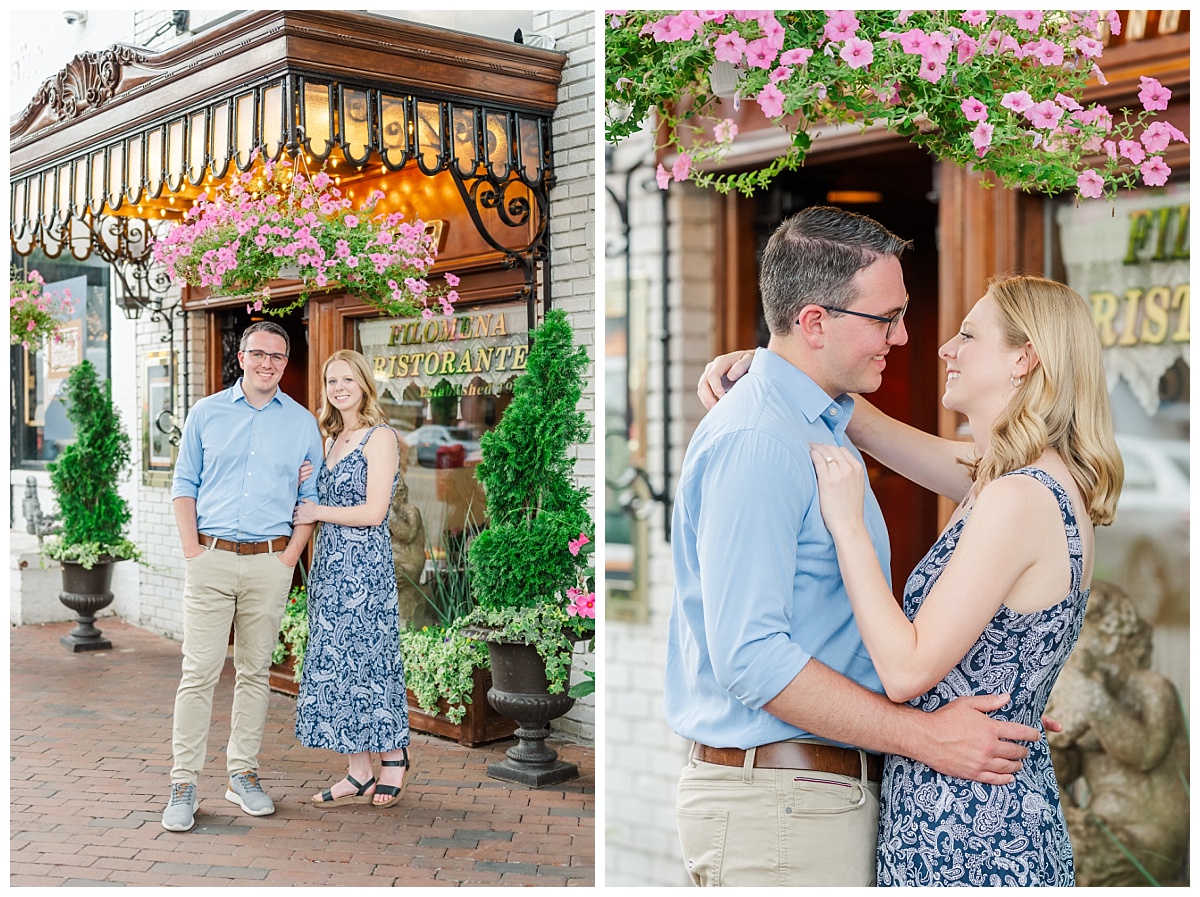 I had the best time exploring the city with Tyler and Maddie for their Georgetown waterfront engagement session! We started our session with some time on the C & O Canal. We then stopped by the restaurant front where they had dinner the evening that Tyler proposed. I love how the Italian woman sits in the front window making fresh pasta with the biggest smile on her face!