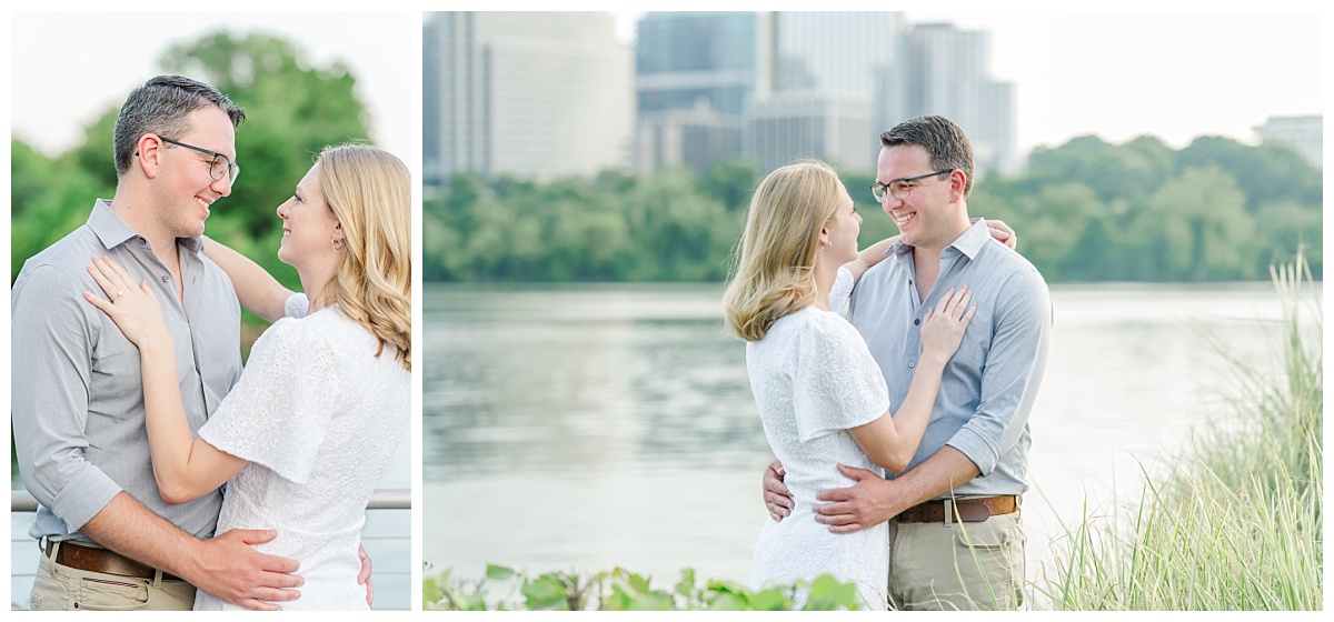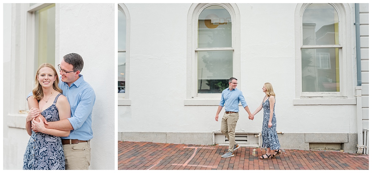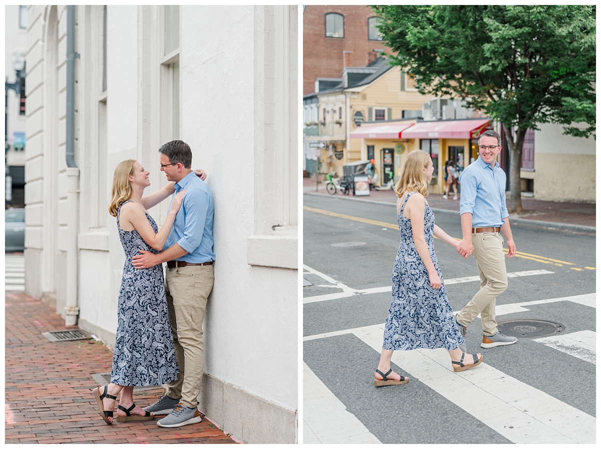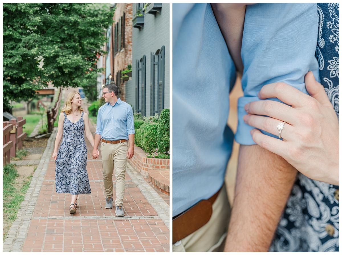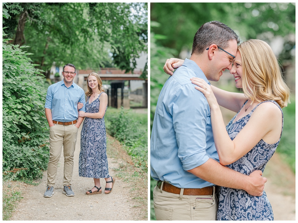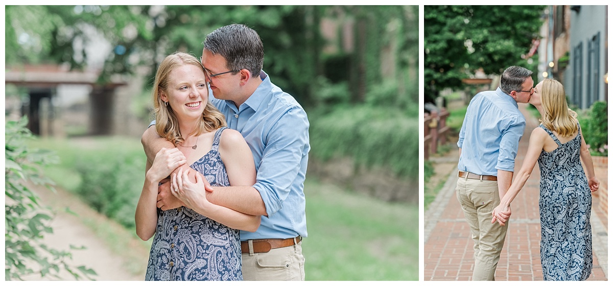 I had the best time exploring the city with Tyler and Maddie for their Georgetown waterfront engagement session! We started our session with some time on the C & O Canal. We then stopped by the restaurant front where they had dinner the evening that Tyler proposed. I love how the Italian woman sits in the front window making fresh pasta with the biggest smile on her face!