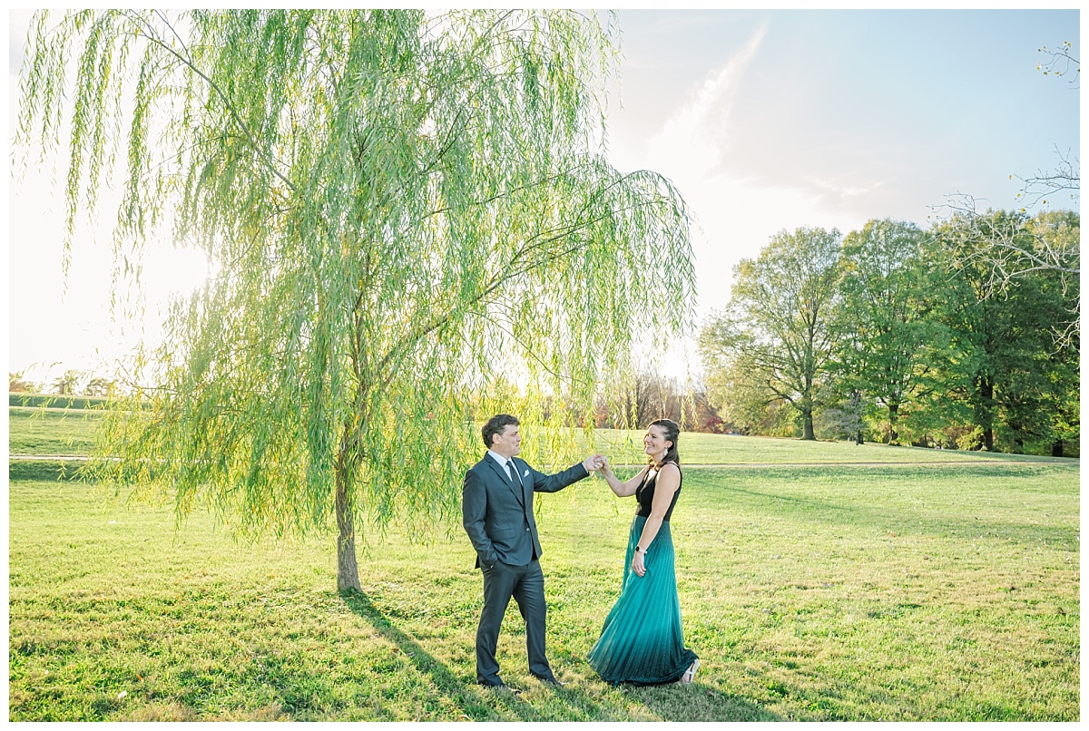 We had a fabulous time exploring Theodore Roosevelt Island in Washington D.C. for this fall engagement session! This location is a place that I had never been and I was blown away by the beauty of this gorgeous refuge tucked away in the midst of a big city! Whitney and Ricky were so much fun as were so willing to try anything! We ventured down the towpath while dodging runners and cyclists and ended up in a stunning spot surrounded by willow trees with a view of the D.C. monuments.