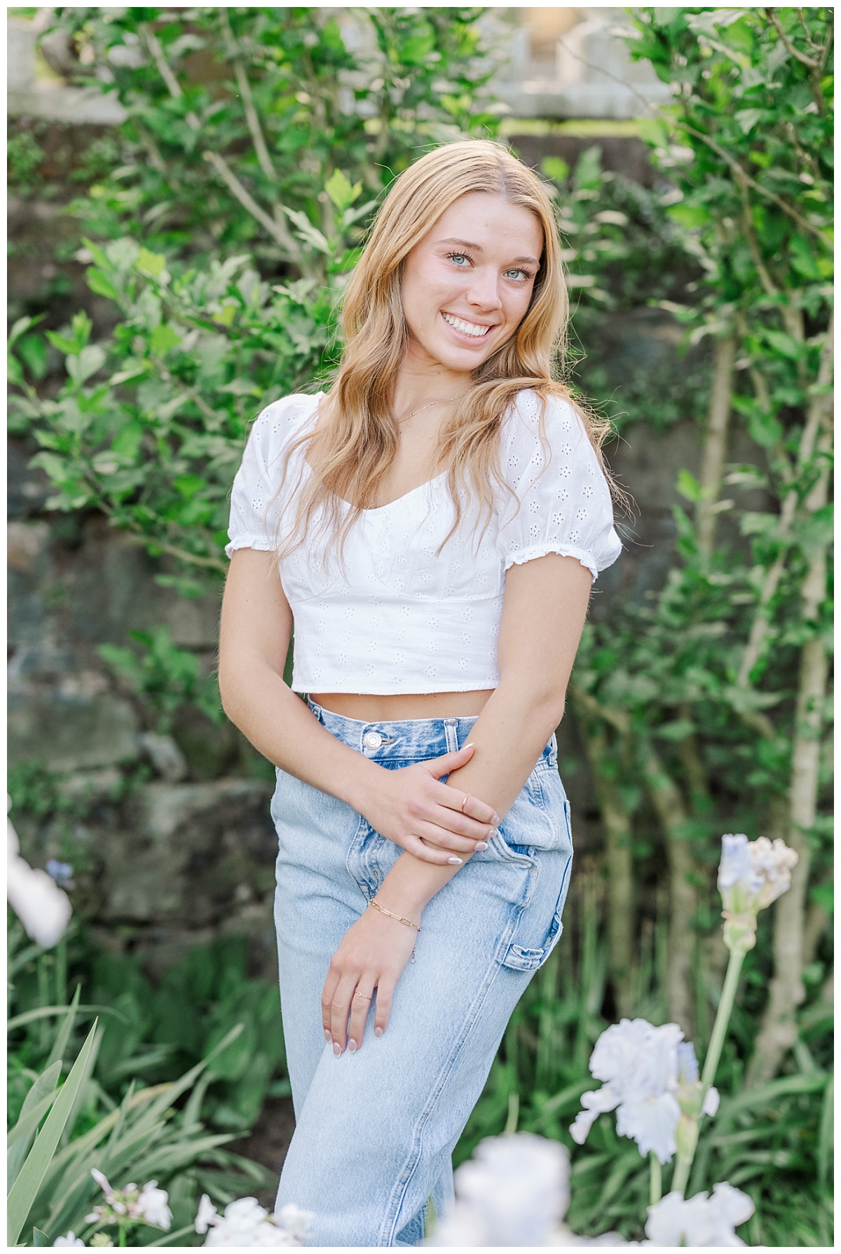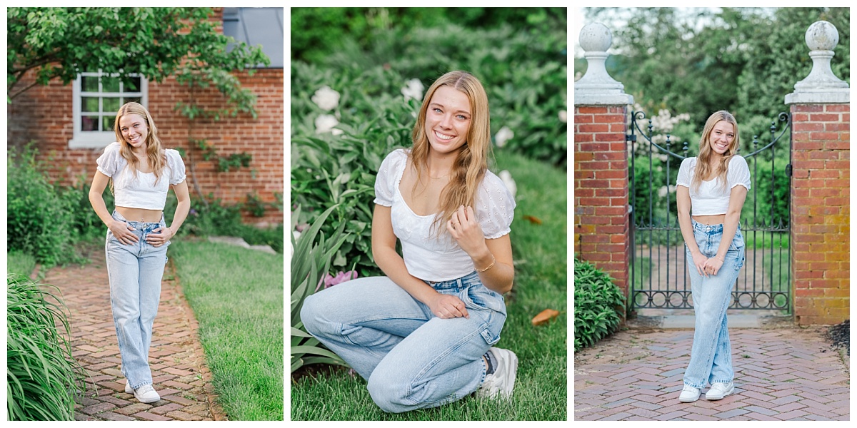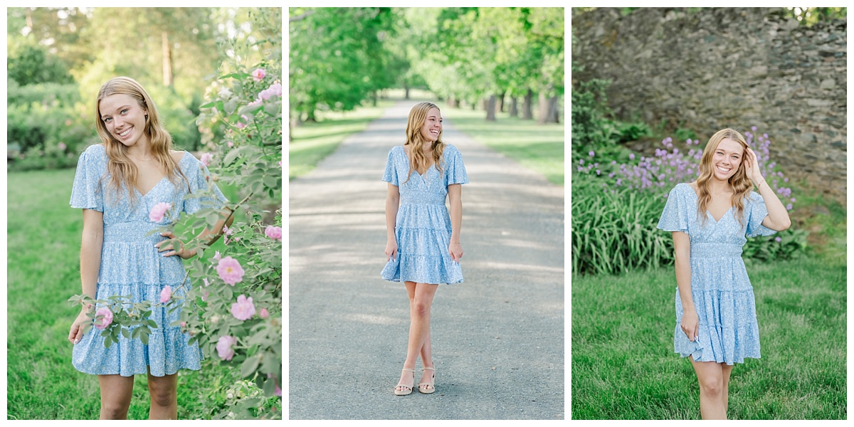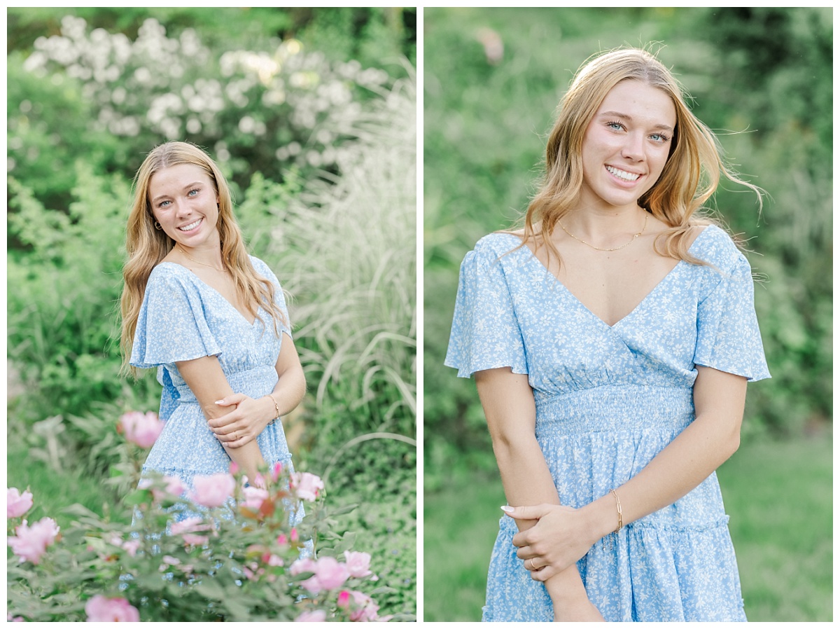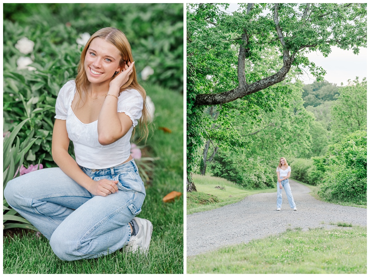I absolutely love my job as a Virginia senior photographer when I get to spend time with seniors with the energy of Danielle! Danielle chose to have her senior session at Oatlands Historic House and Gardens in Leesburg, Virginia because she wanted to make sure we had florals. The gardens never disappoint! She was so much fun to photograph and was a natural in front of my camera! She was such a good sport as we joked about heading into the tall grass and hoping to not run into any wild creatures!