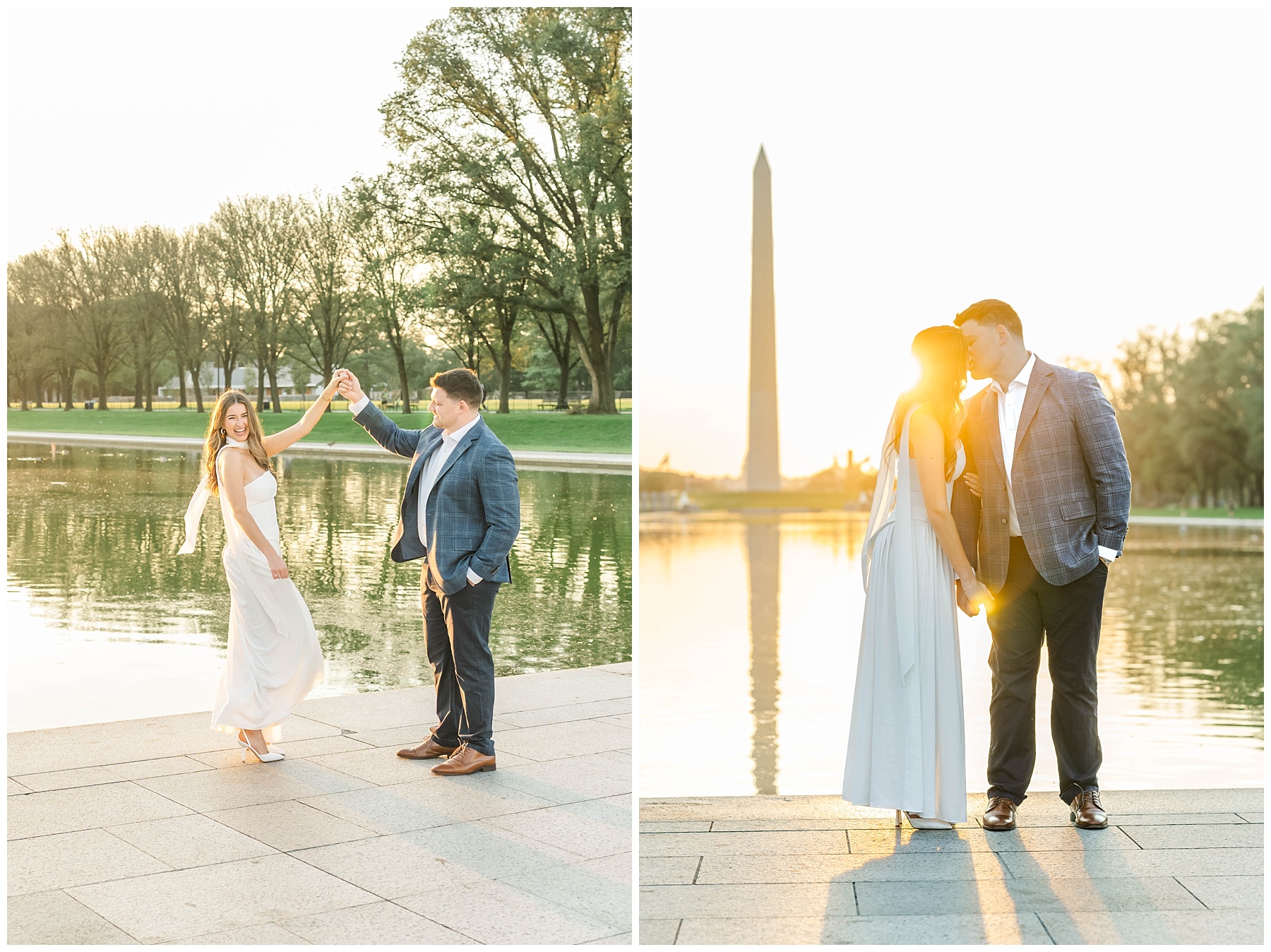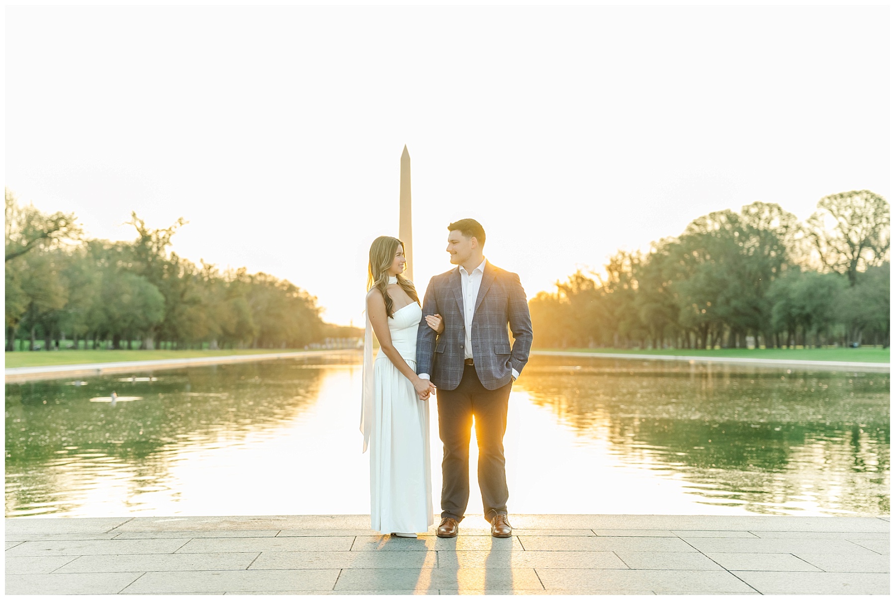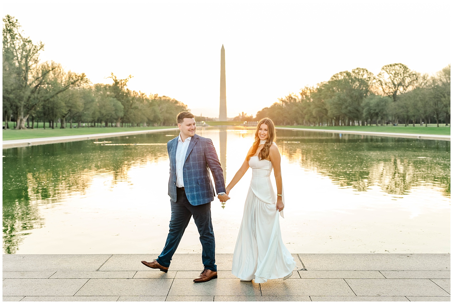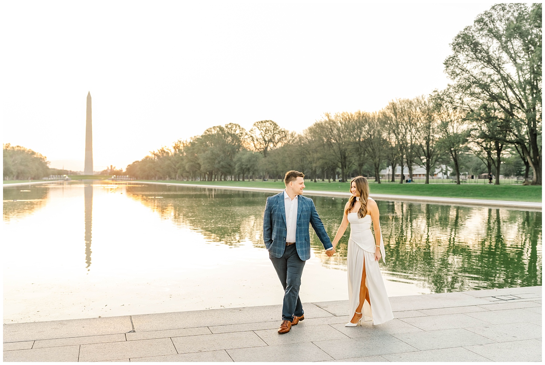 If you’re considering engagement photos in Washington, D.C., sunrise is one of the best times of day. Not only do you get that incredible golden light, but you also avoid the crowds that fill the monuments later in the day. It creates space for photos that feel more natural, relaxed, and timeless.