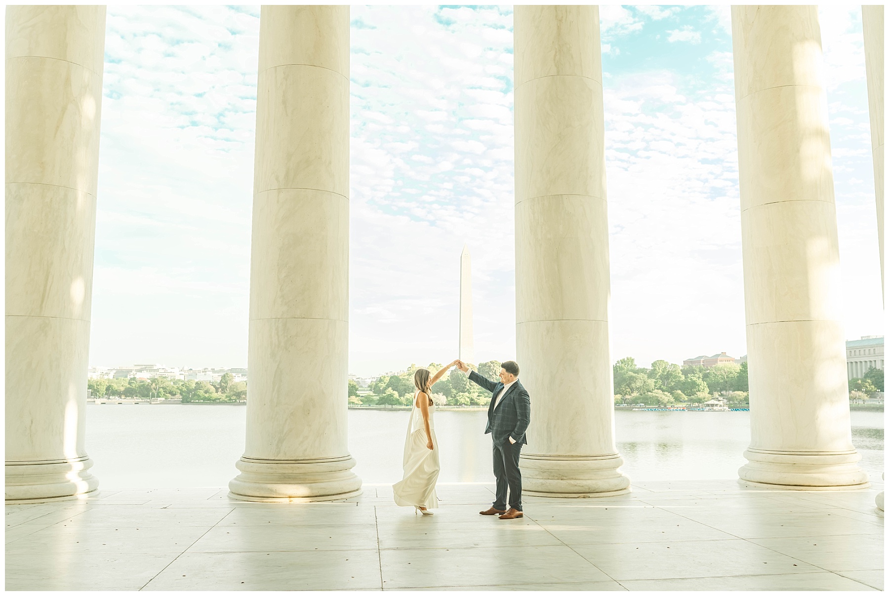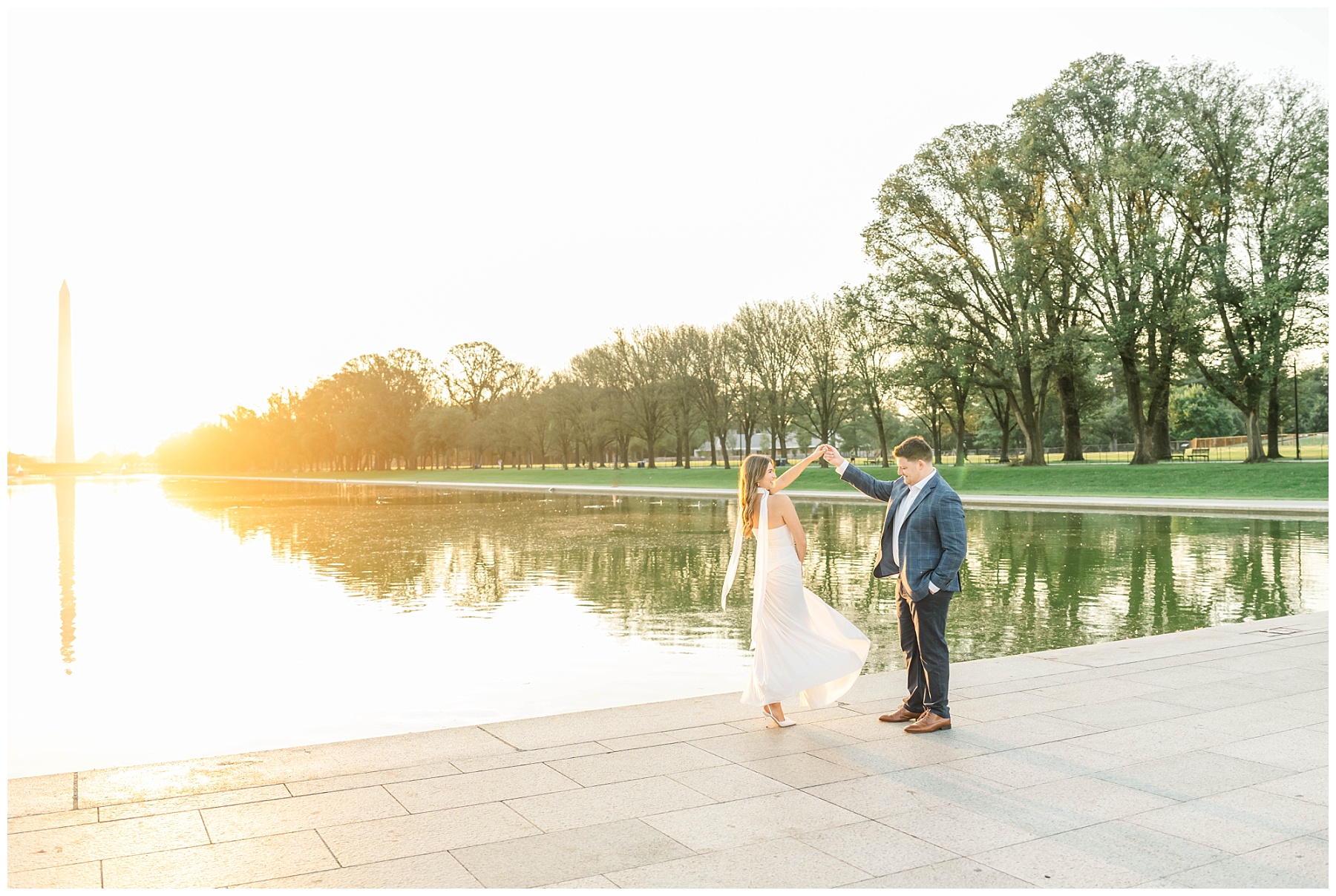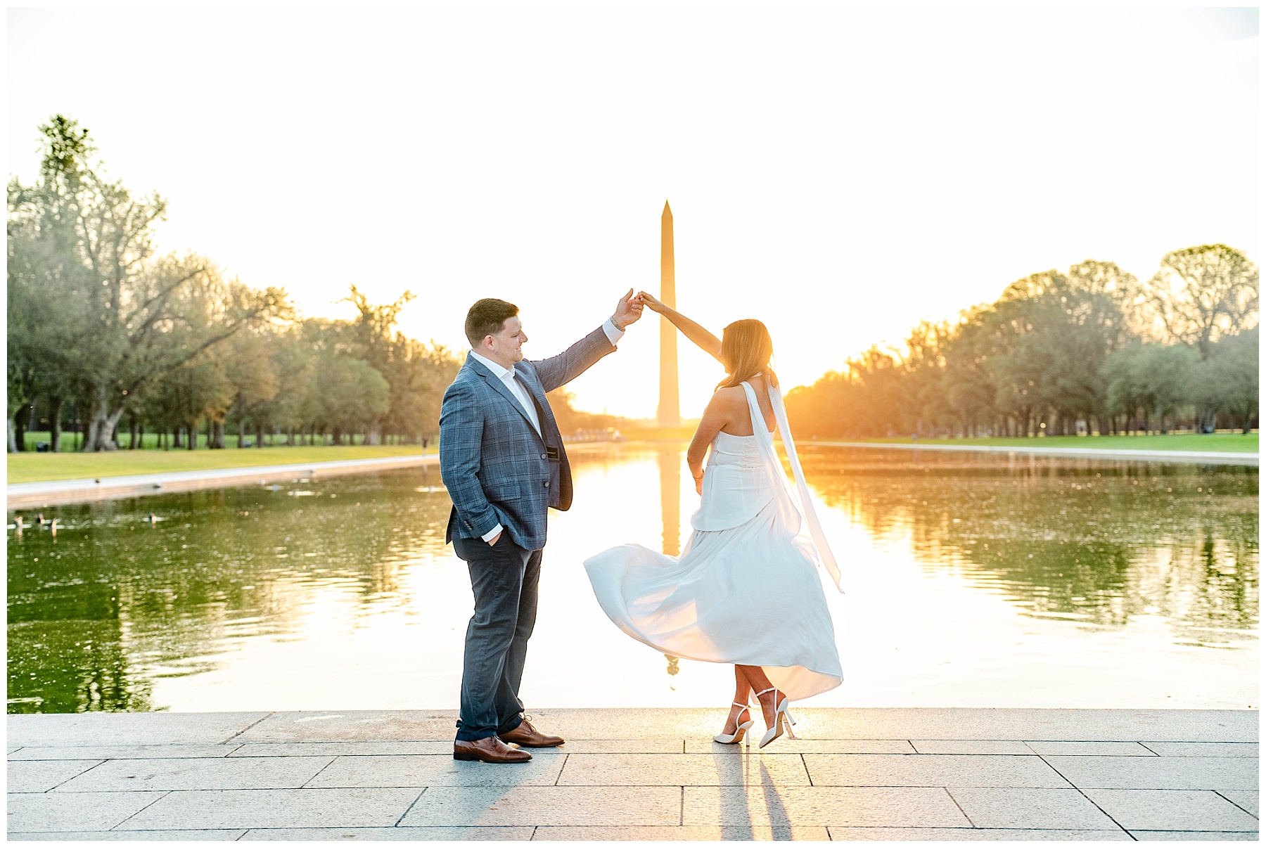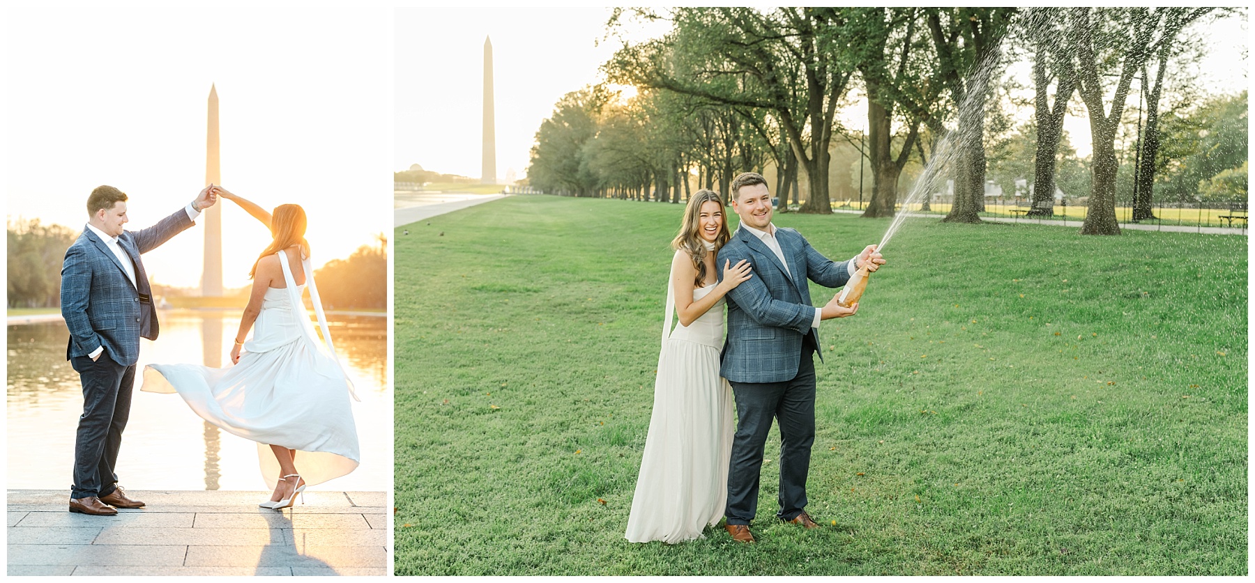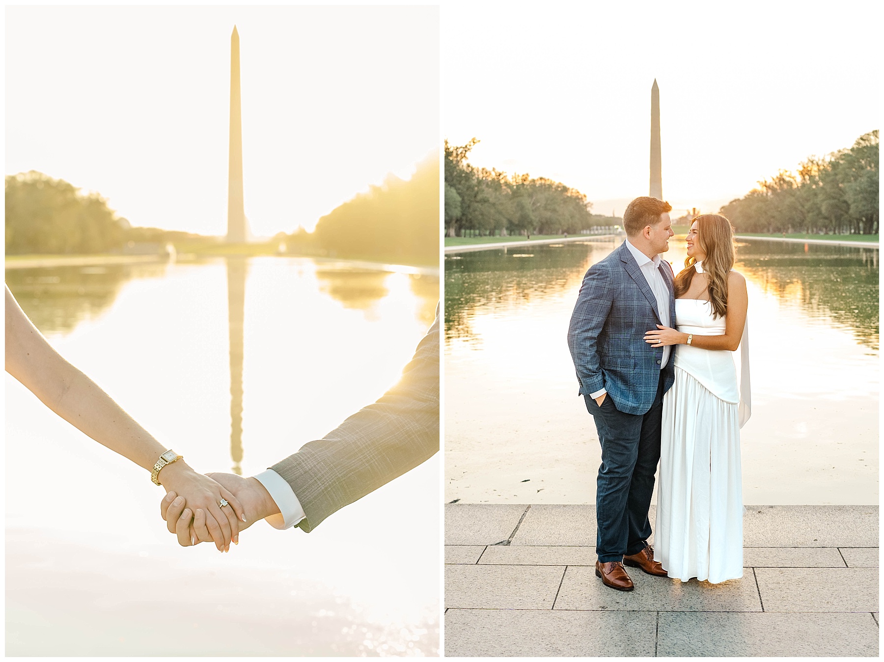 If you’re considering engagement photos in Washington, D.C., sunrise is one of the best times of day. Not only do you get that incredible golden light, but you also avoid the crowds that fill the monuments later in the day. It creates space for photos that feel more natural, relaxed, and timeless.