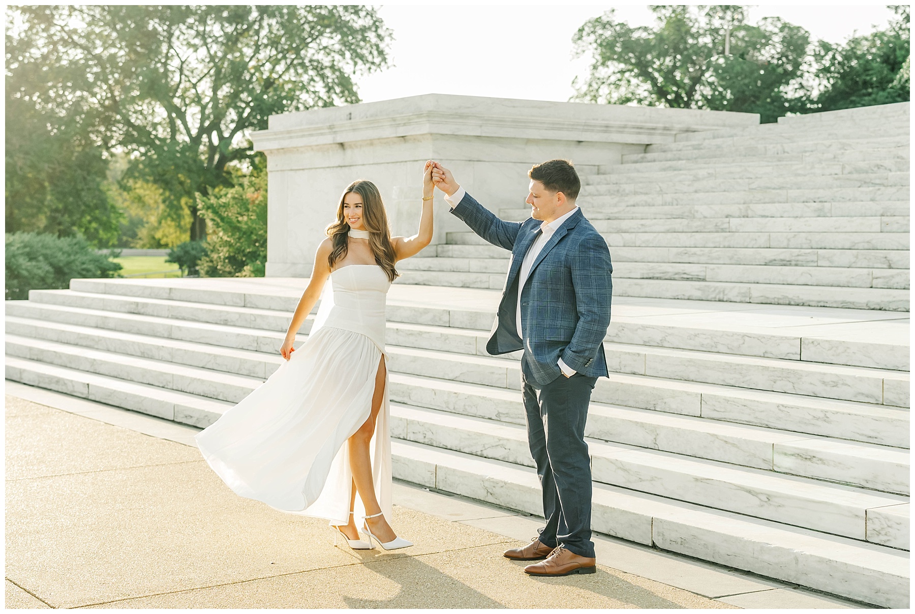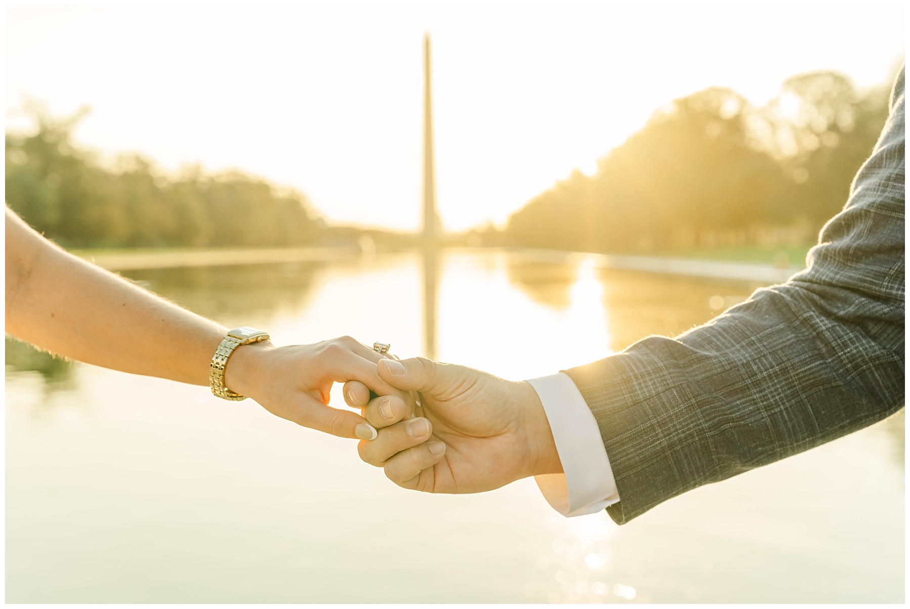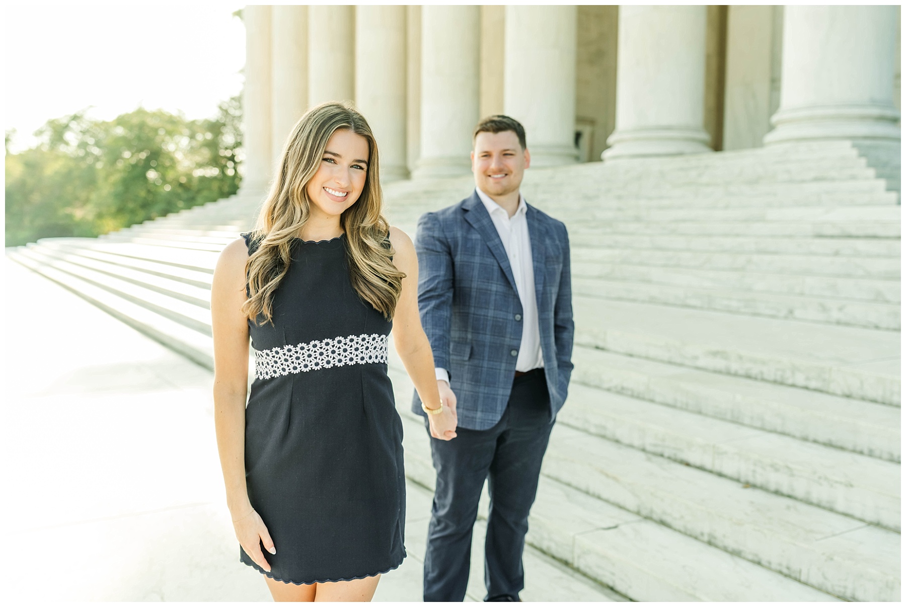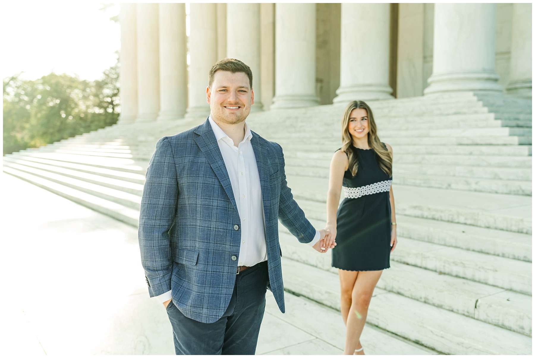If you’re considering engagement photos in Washington, D.C., sunrise is one of the best times of day. Not only do you get that incredible golden light, but you also avoid the crowds that fill the monuments later in the day. It creates space for photos that feel more natural, relaxed, and timeless.