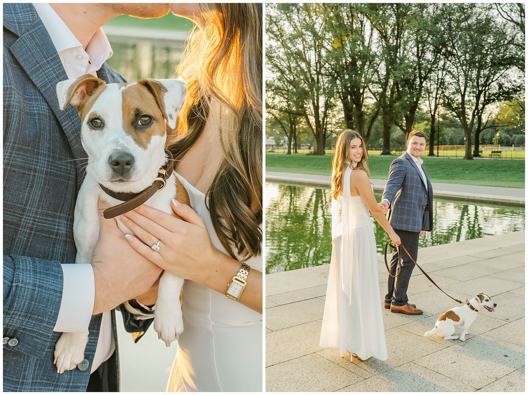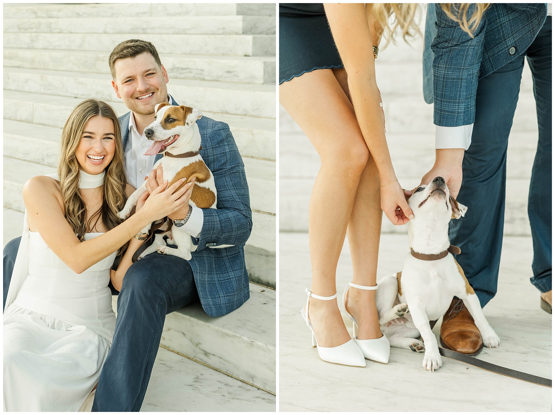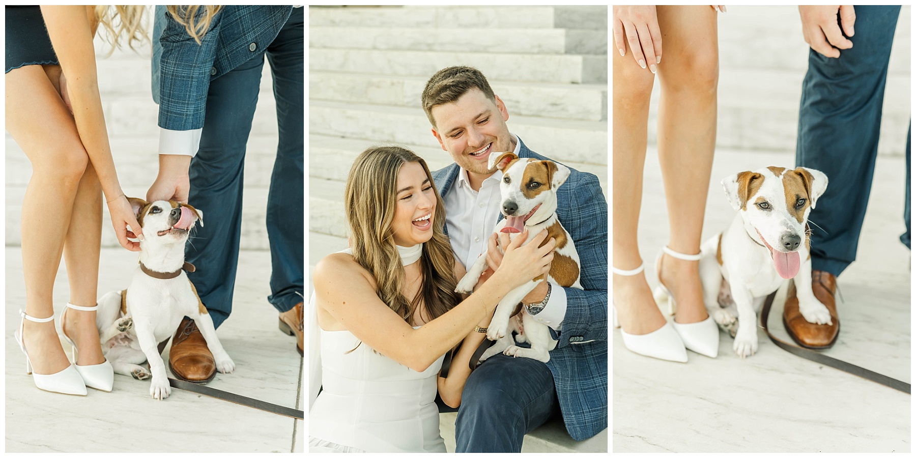 One of the sweetest parts of their session was having their 7-month-old puppy, Scout, along for the adventure. He was so eager to give mom and dad lots of puppy kisses, adding extra joy (and laughter!) to the morning. Scout is such a big part of their love story, and it was so special to capture him with them during this exciting season of life.